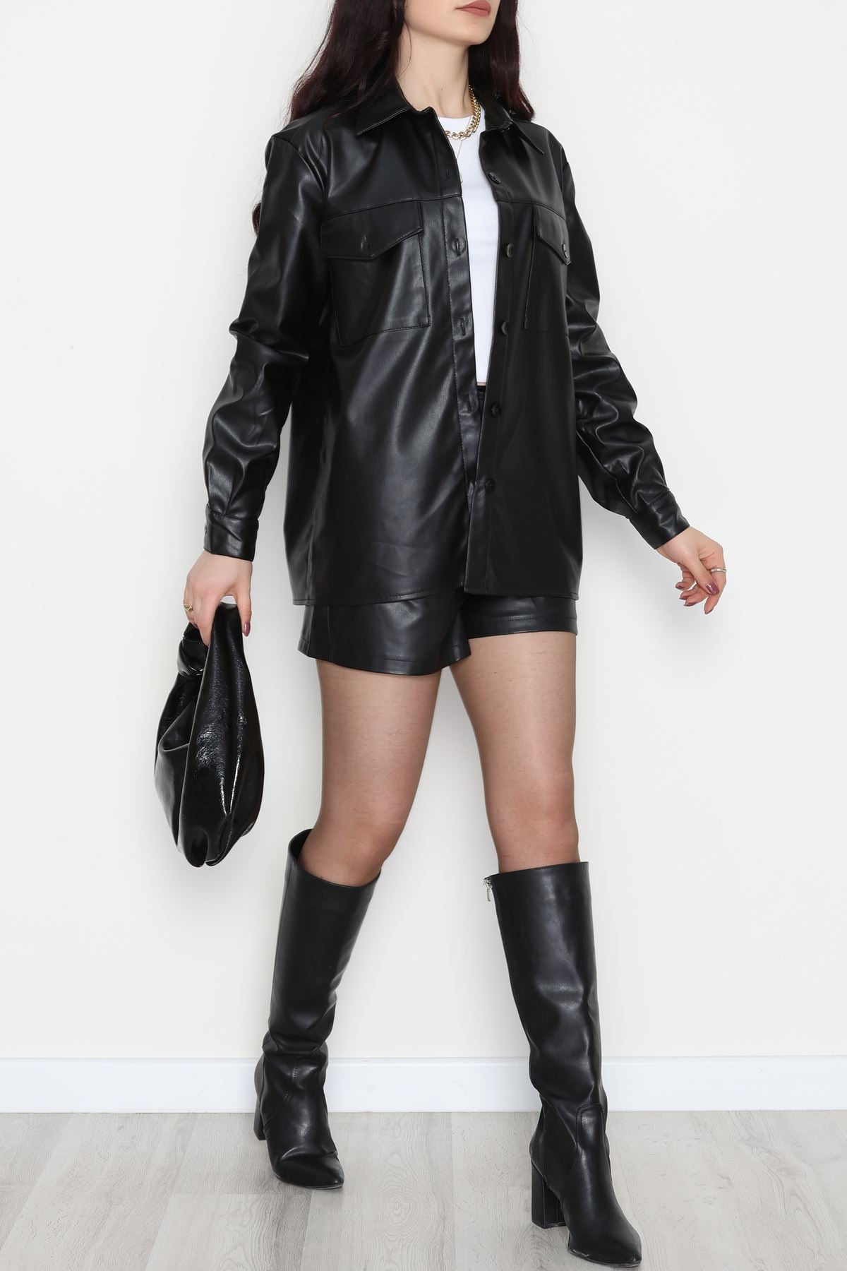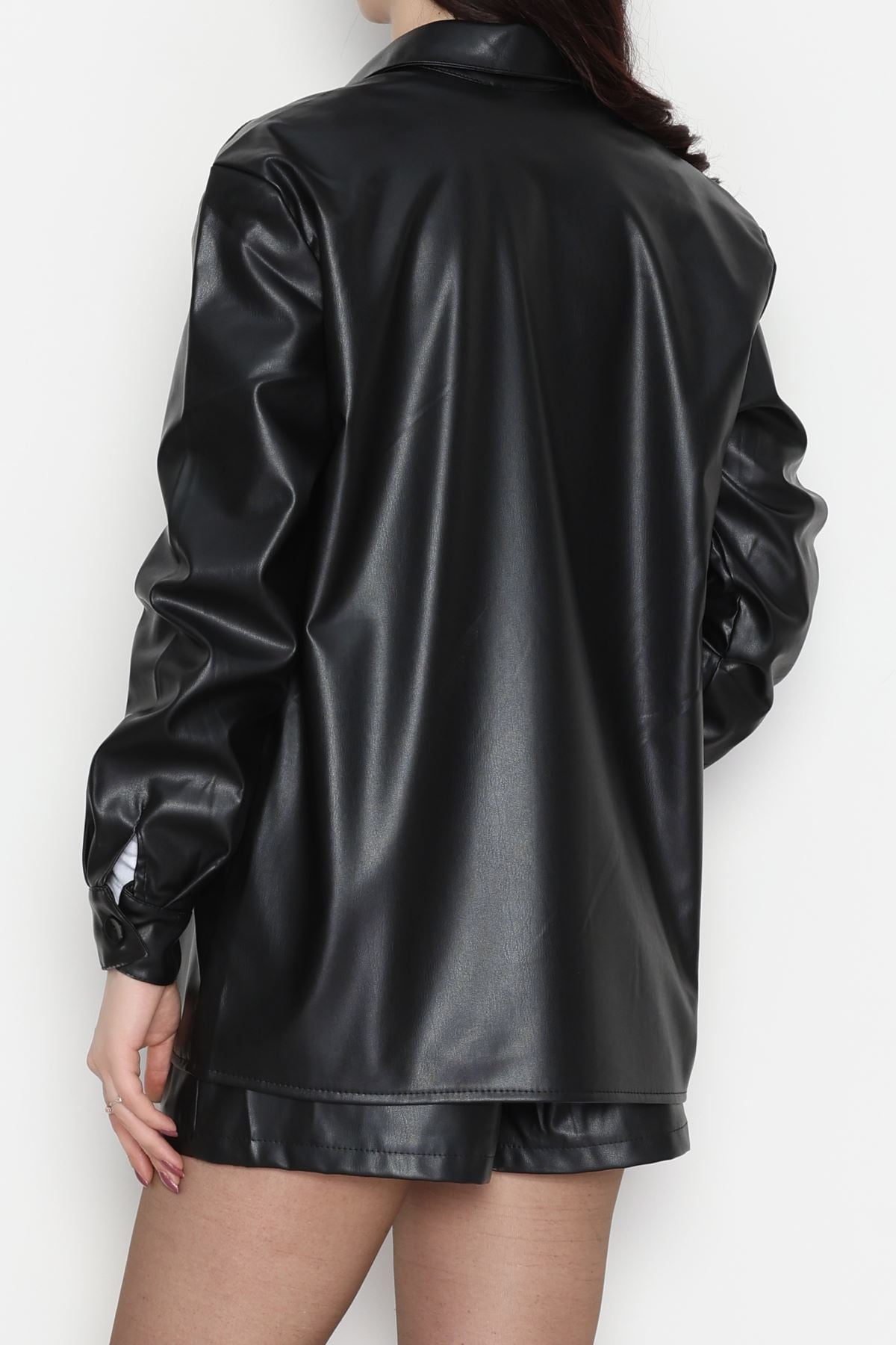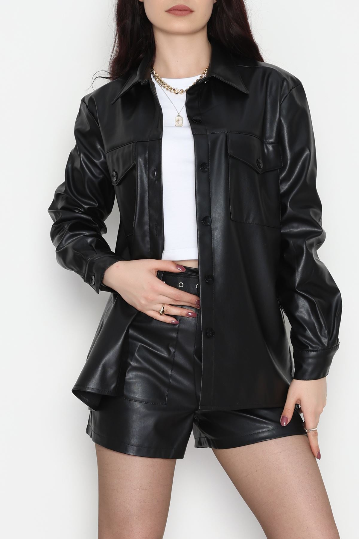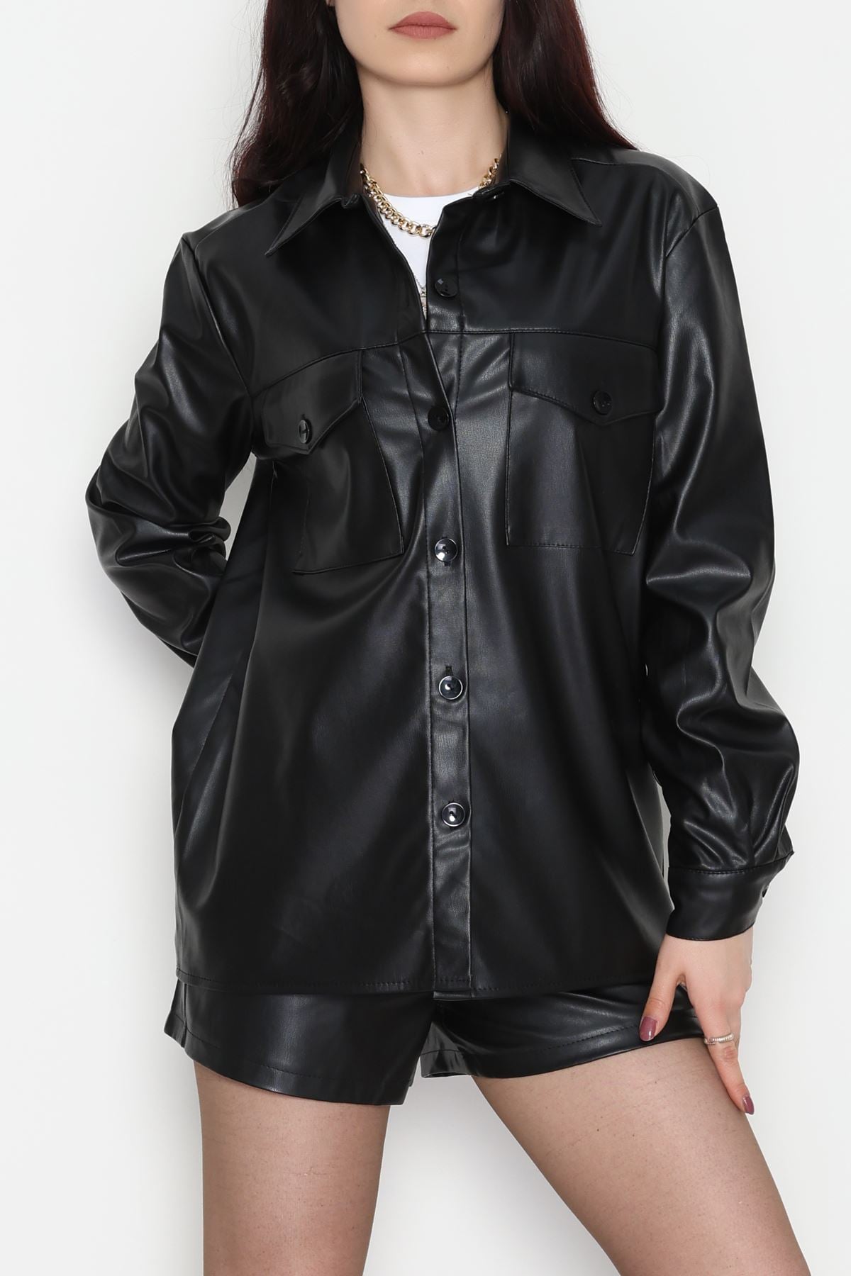 Düğmeli Deri Gömlek Siyah - 51211.1779.