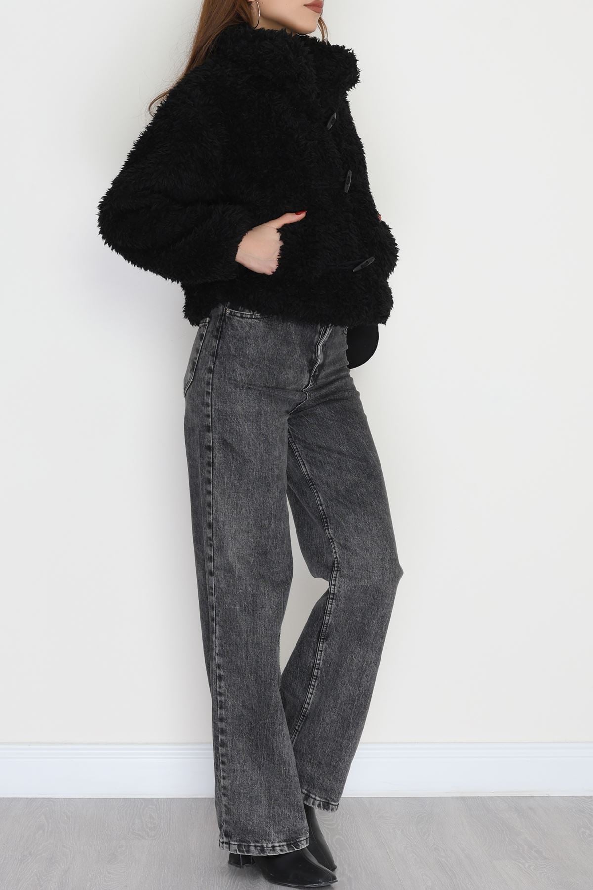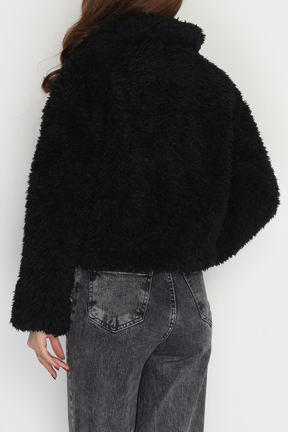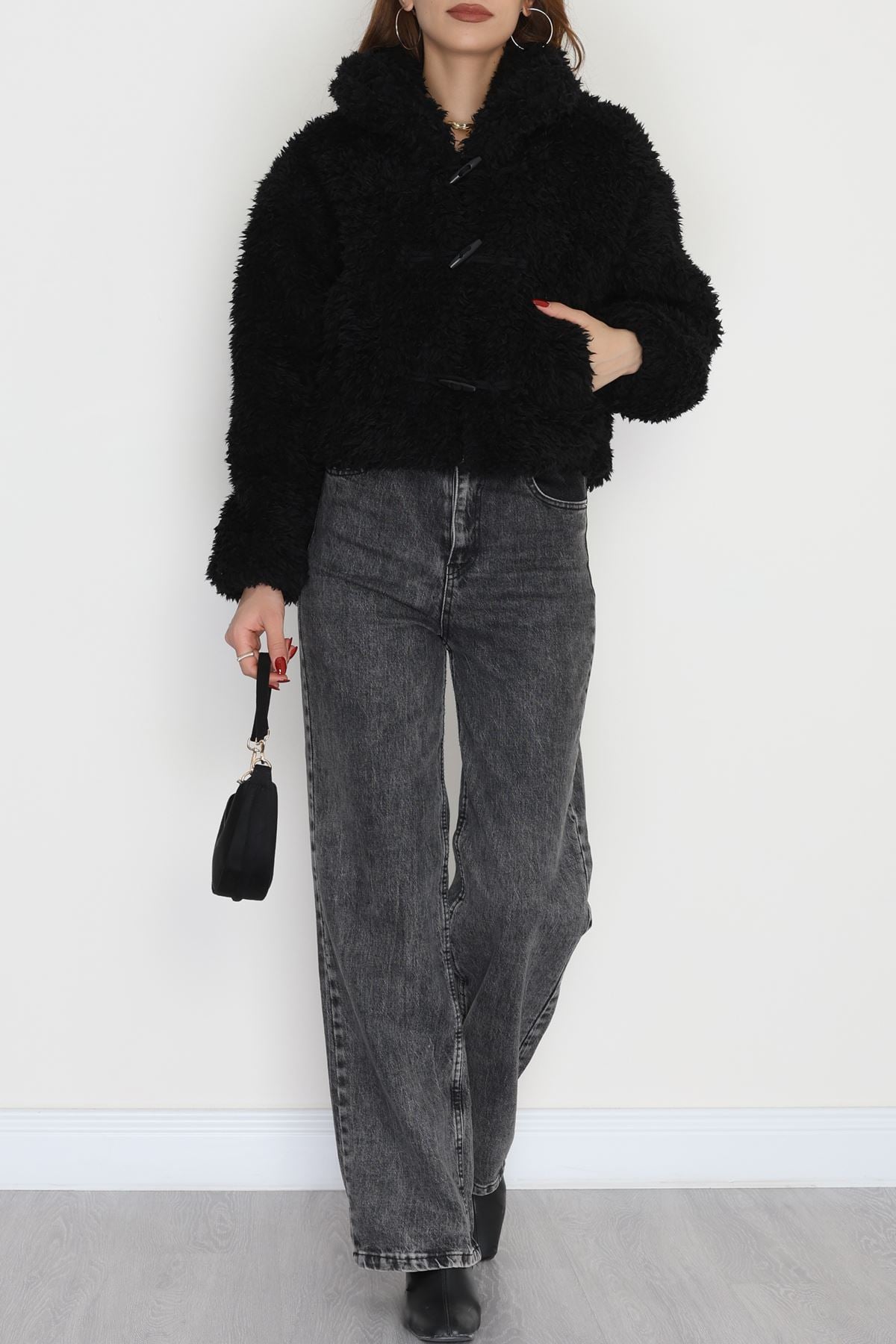 Düğmeli Peluş Mont Siyah - 8749.179.