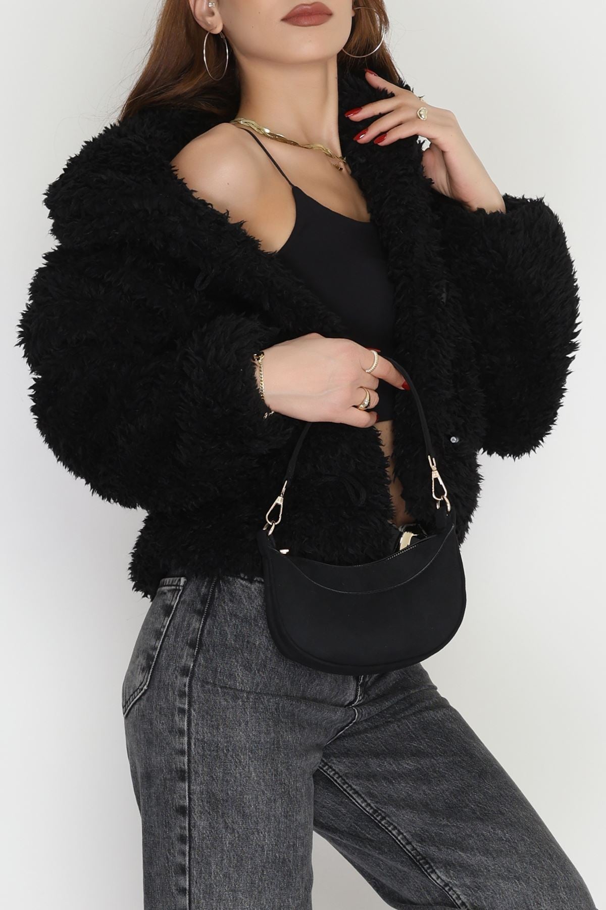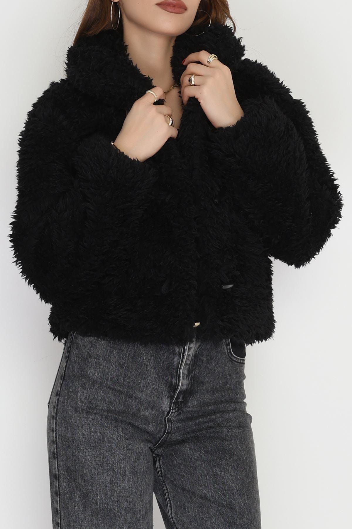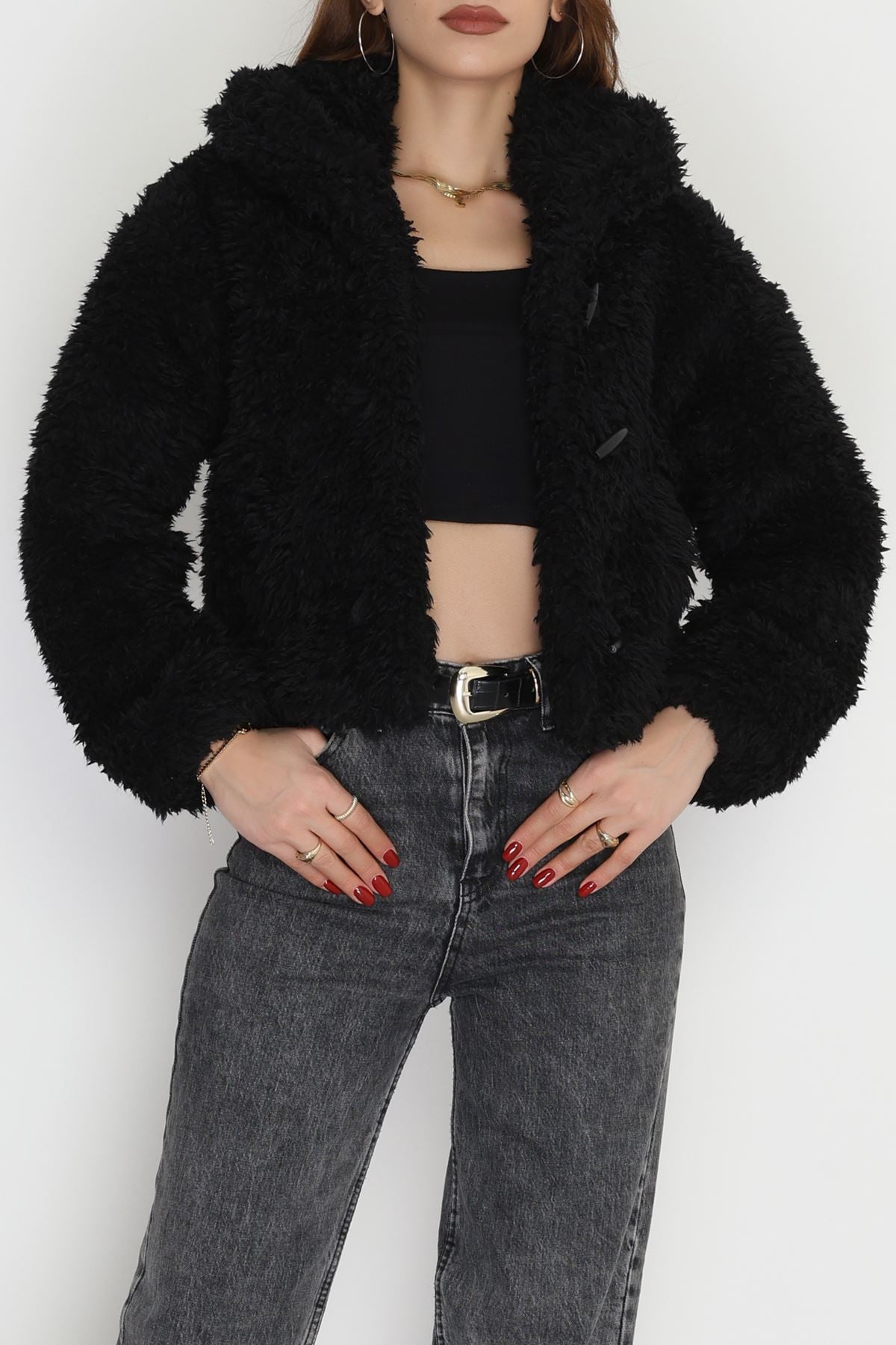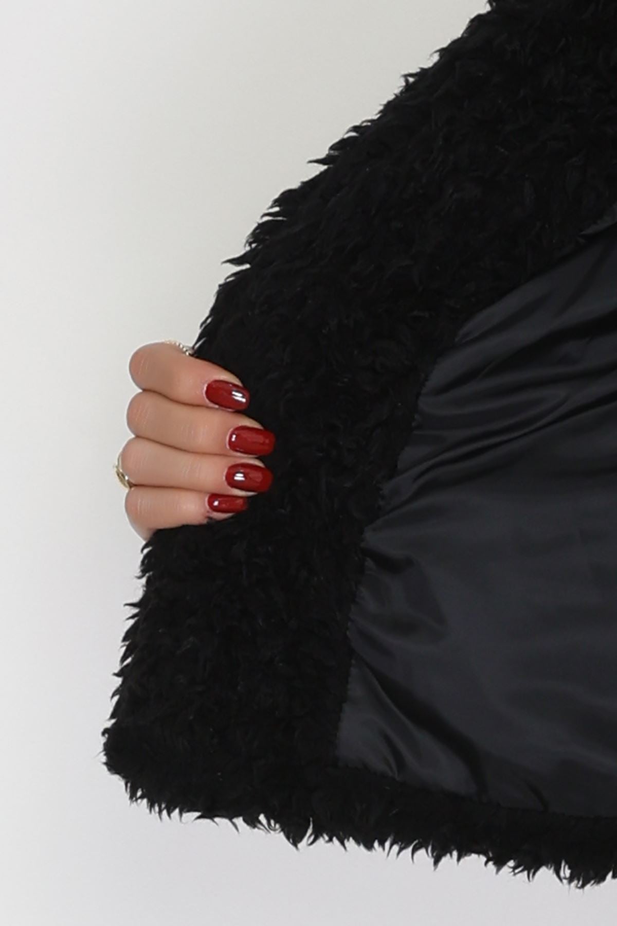 Düğmeli Peluş Mont Siyah - 8749.179.