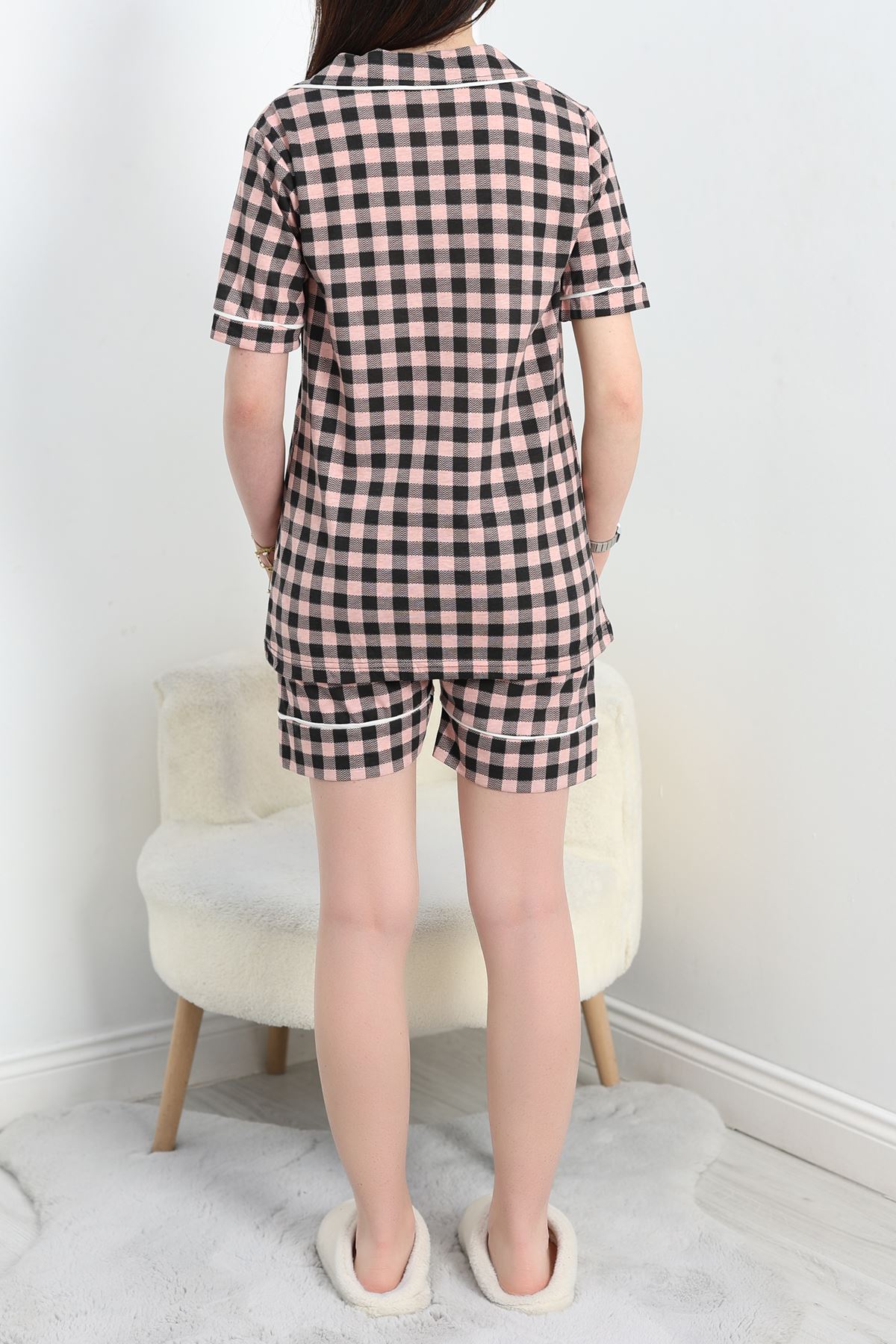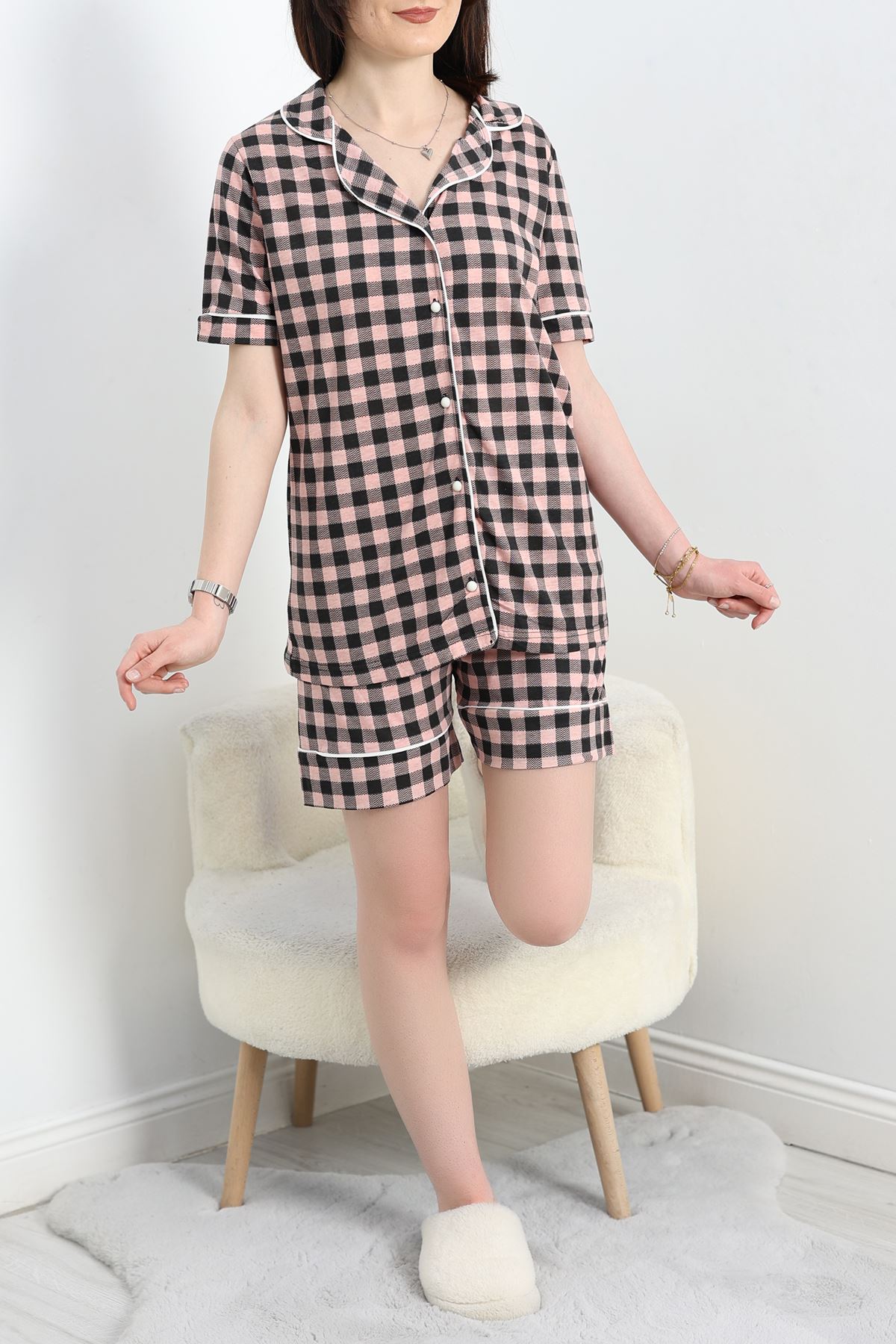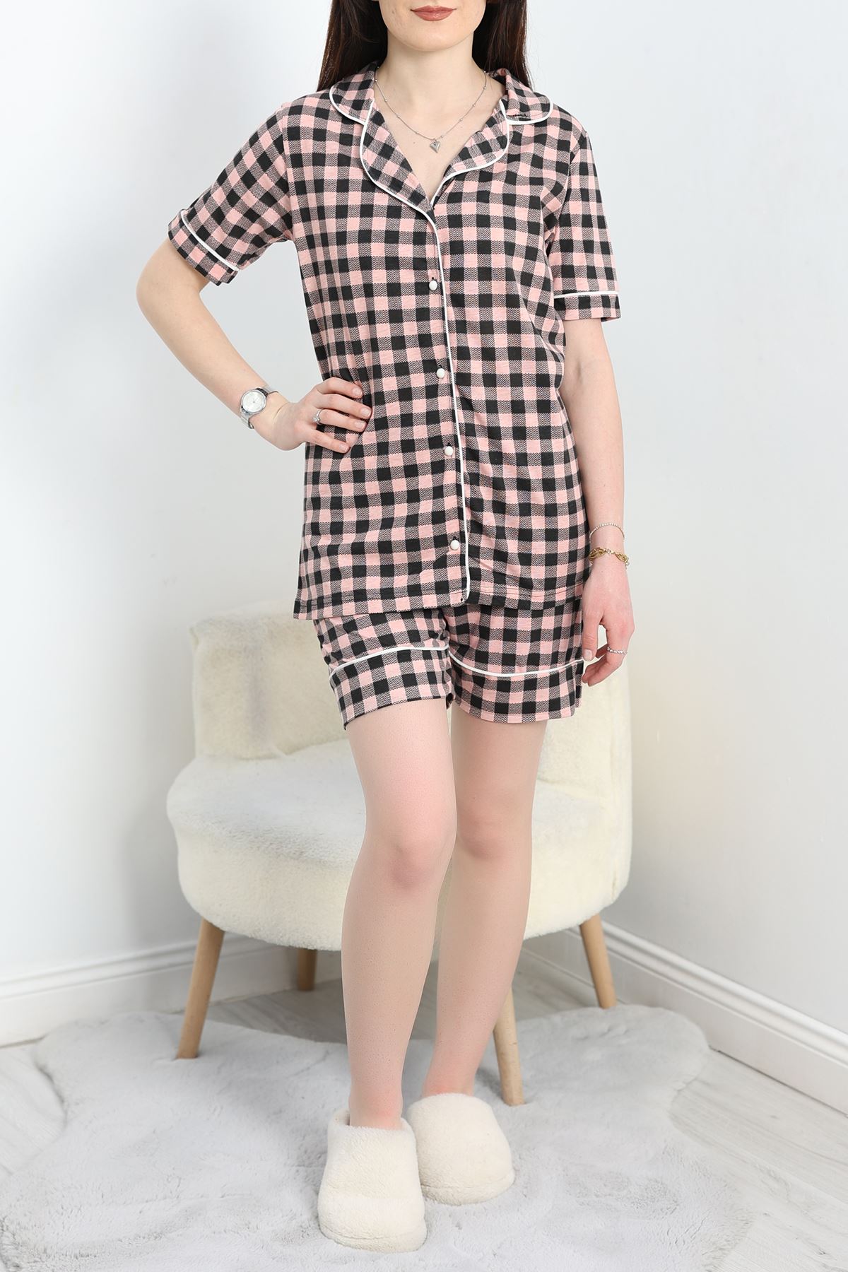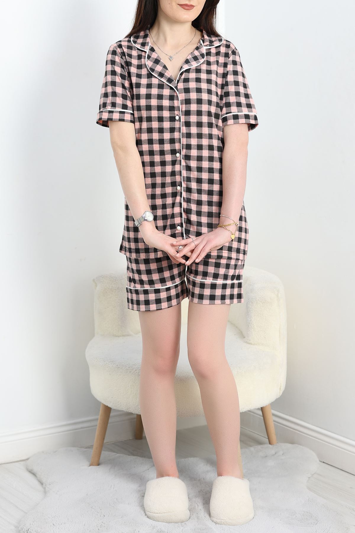 Düğmeli Şortlu Pijama Takımı Pudrasiyah - 18944.1567.