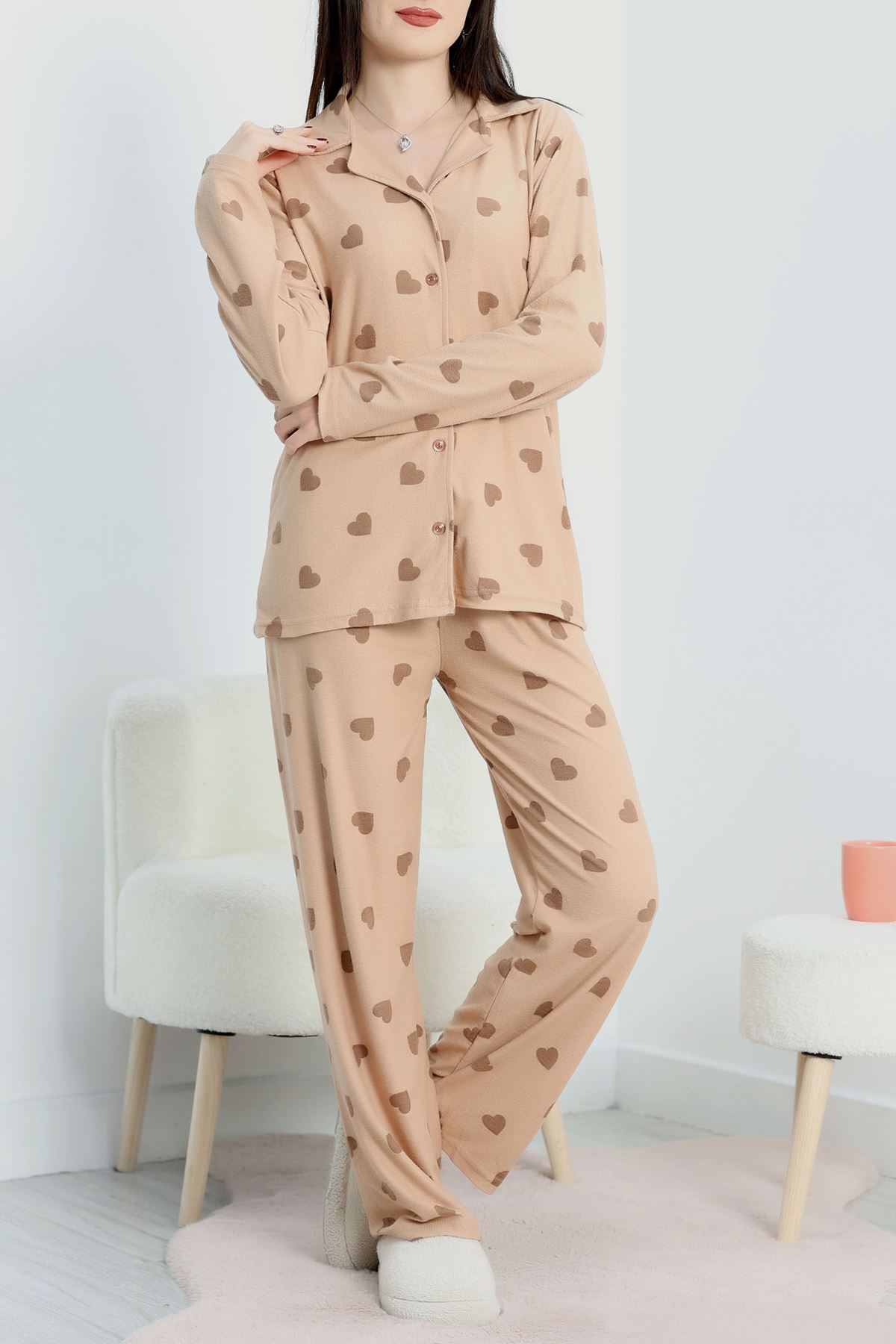 Düğmeli Süet Pijama Takımı Kahvekalp - 450.1287.