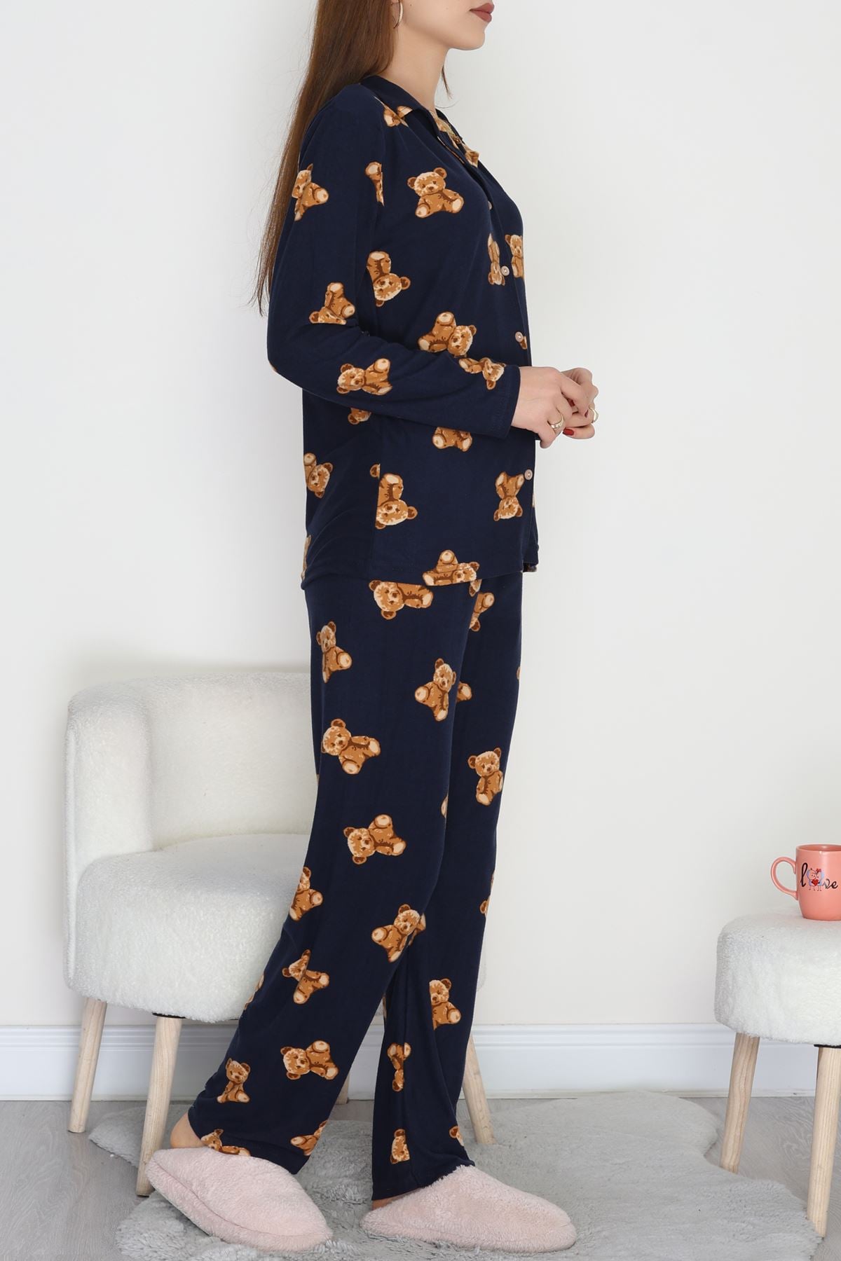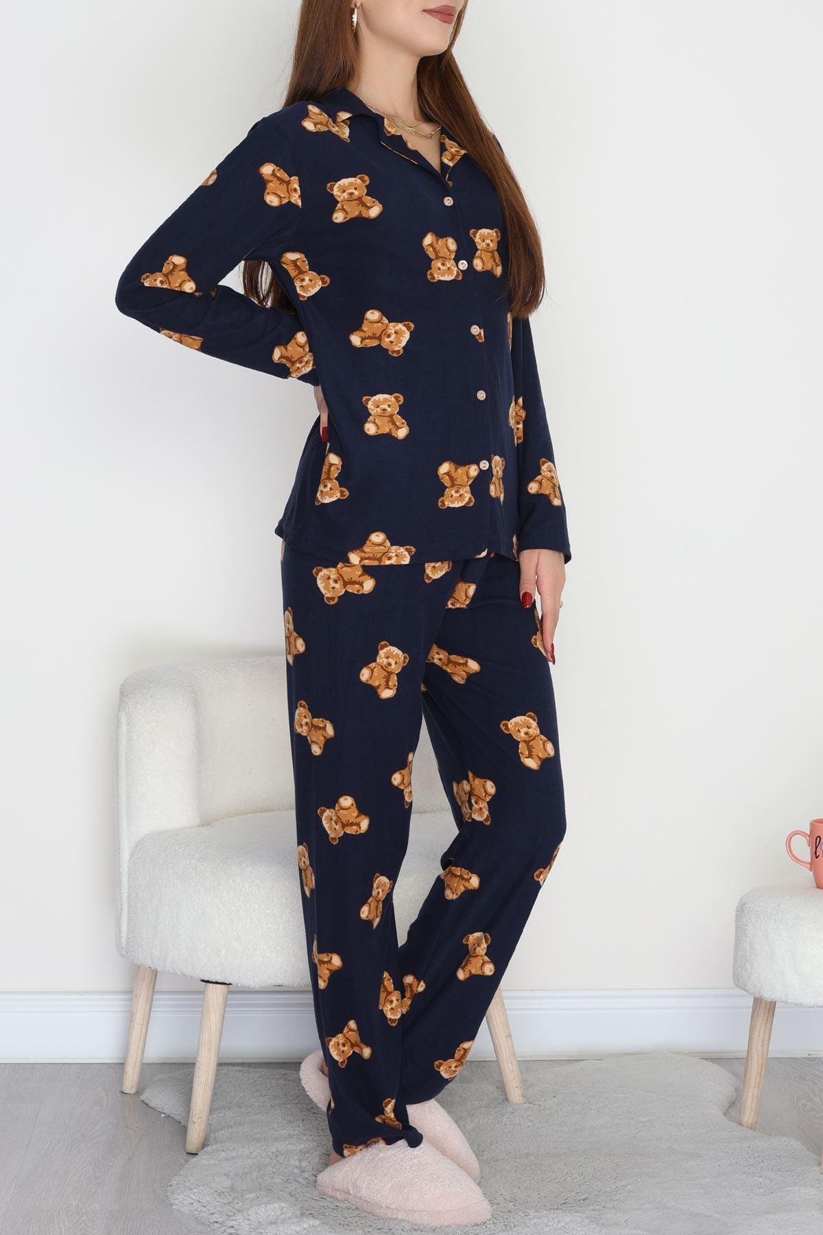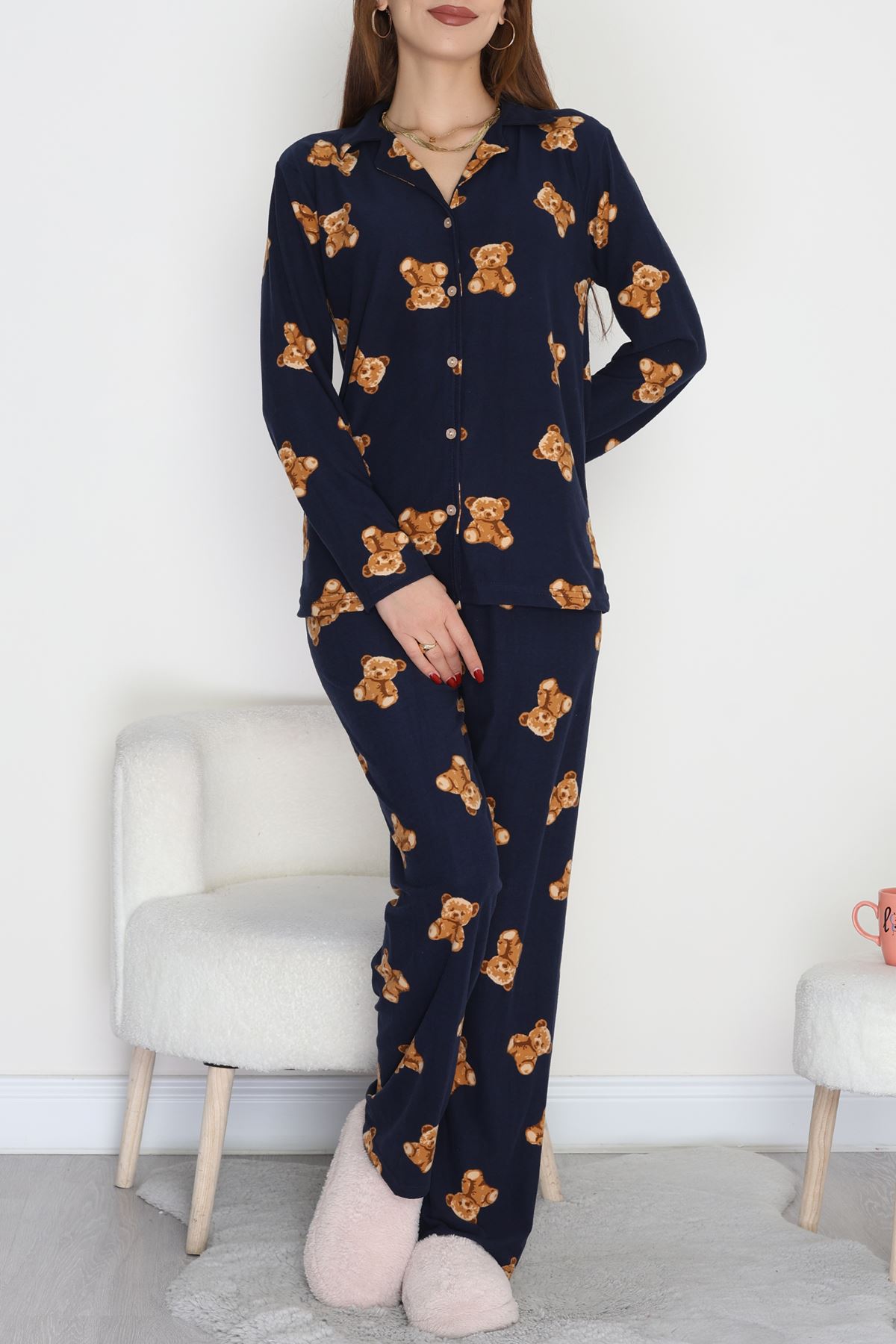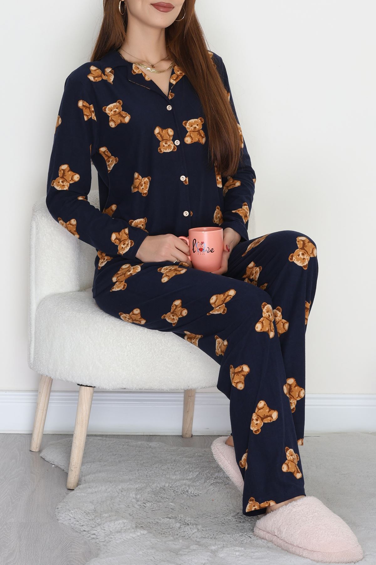 Düğmeli Süet Pijama Takımı Laciayı - 450.1287.