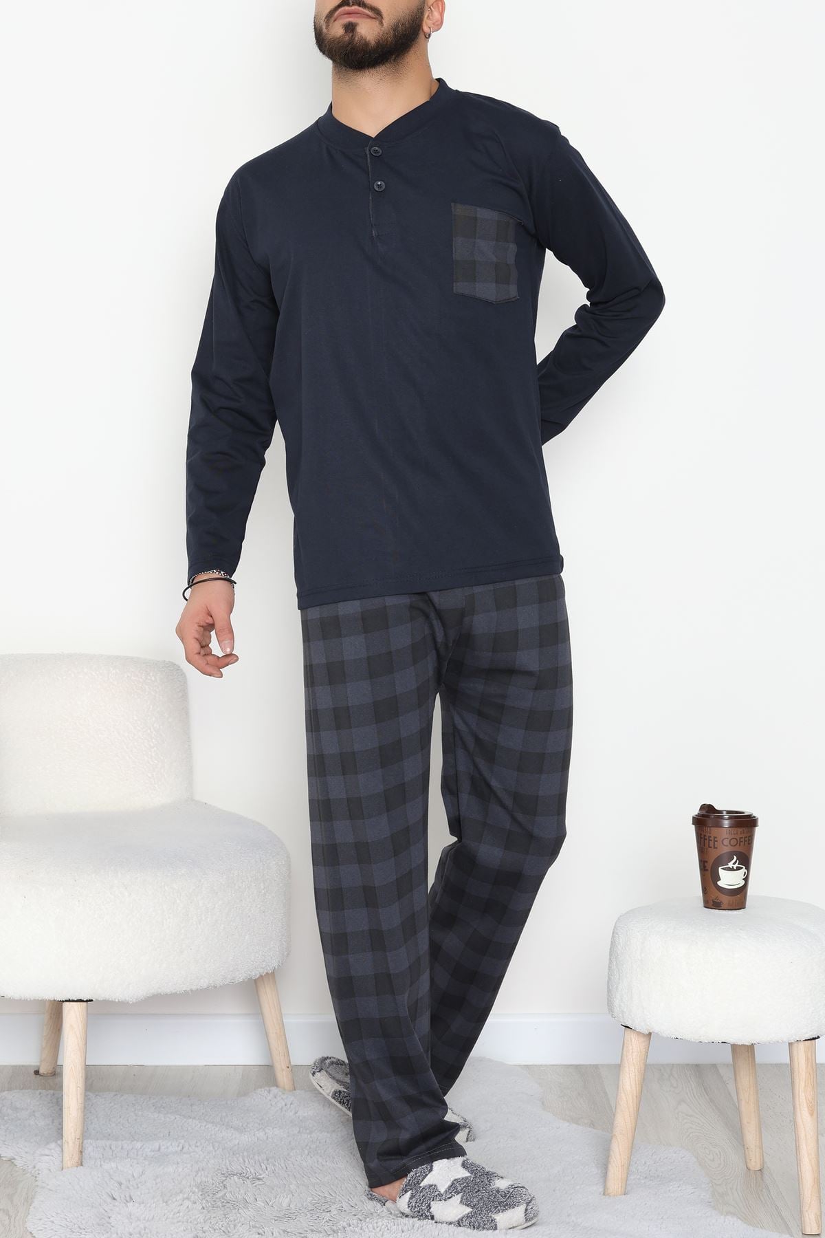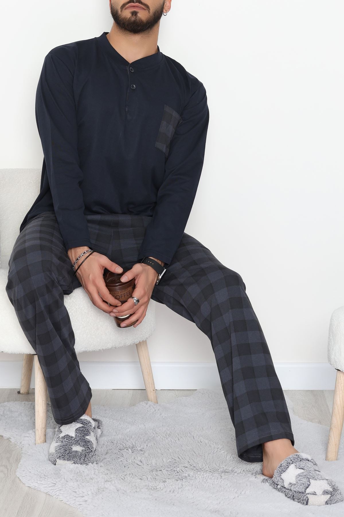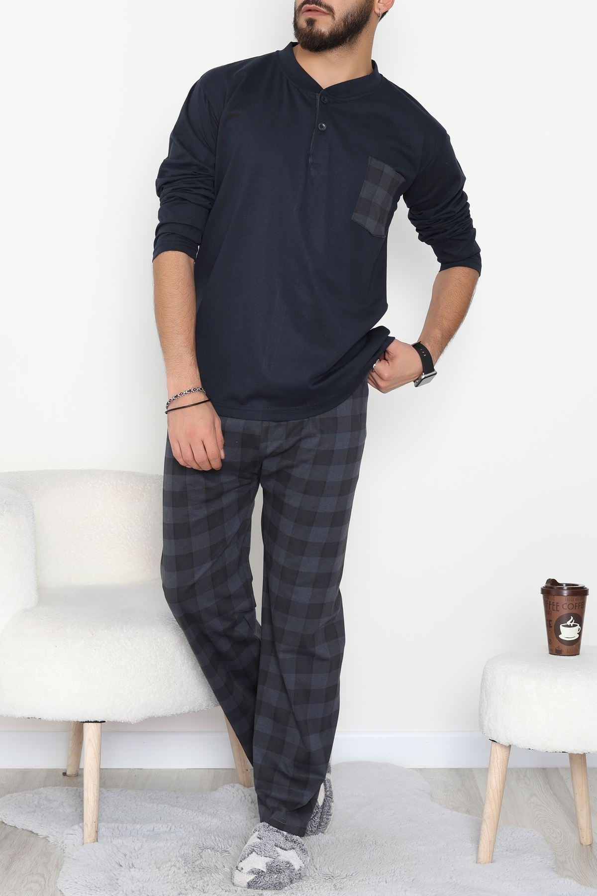 Ekoseli Süprem Erkek Pijama Takımı Lacivert - 42776.1838.