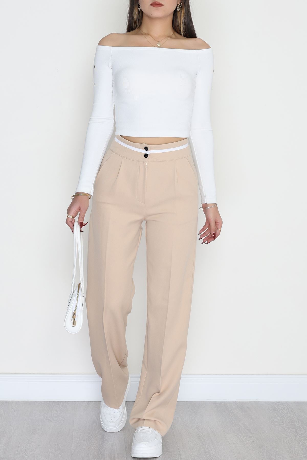 Tek Pile Ekstraforlu Palazzo Pantolon Taş - 50054.1920.