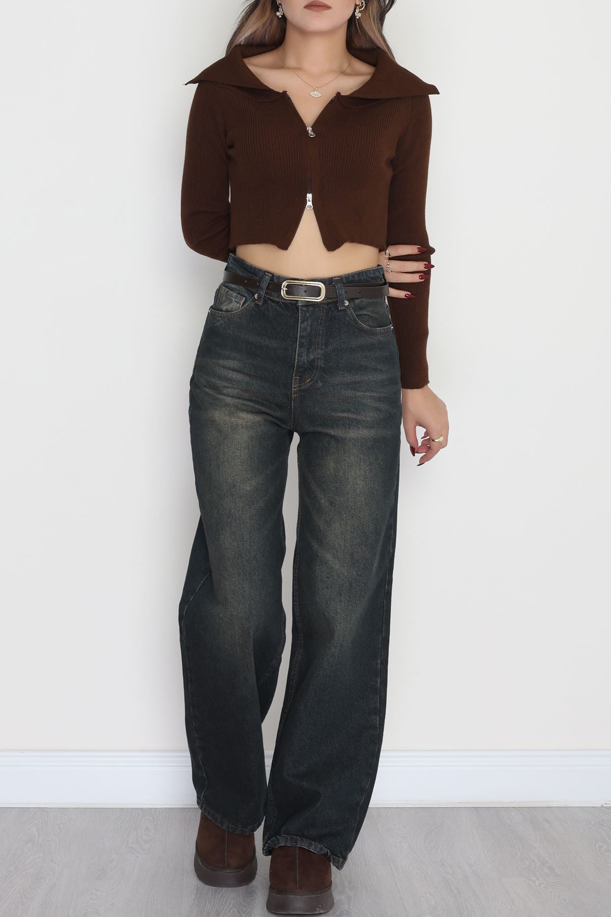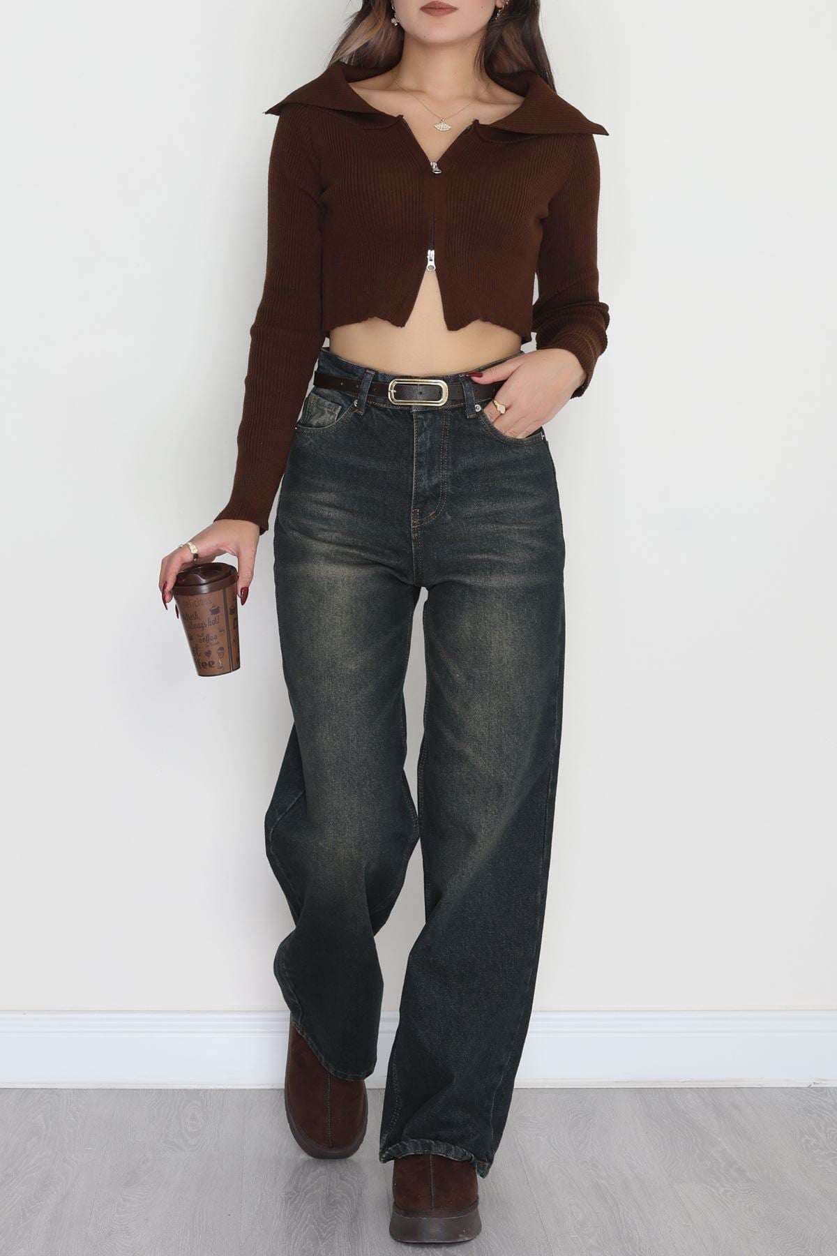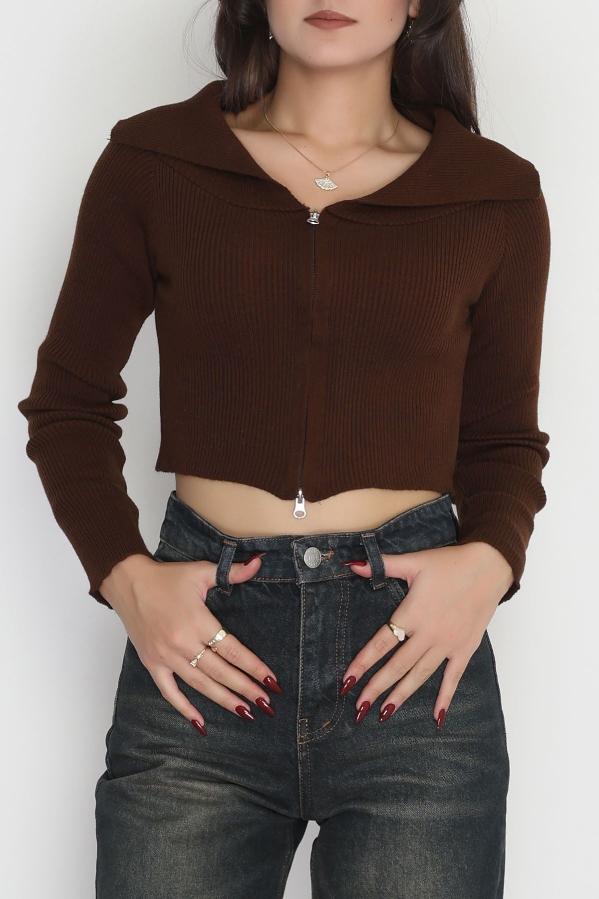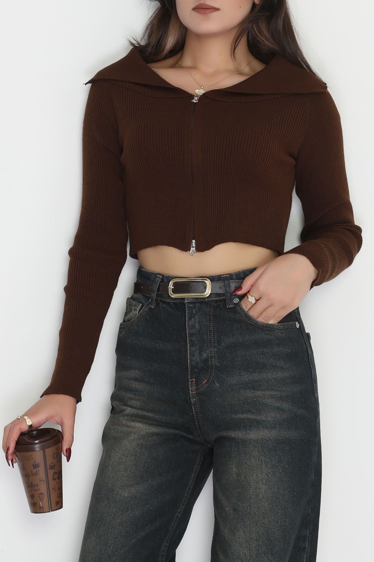 Fermuarlı Triko Kahve - 2252.1765.