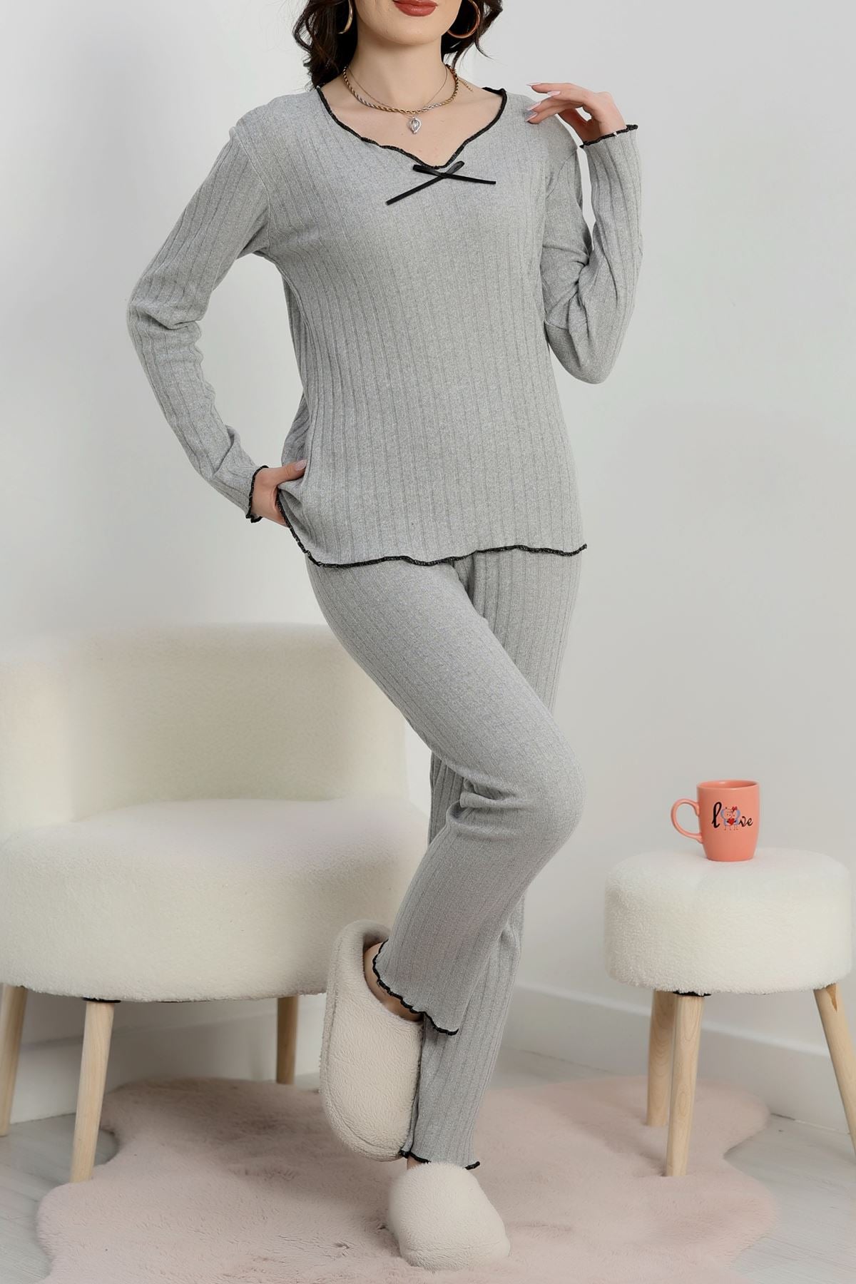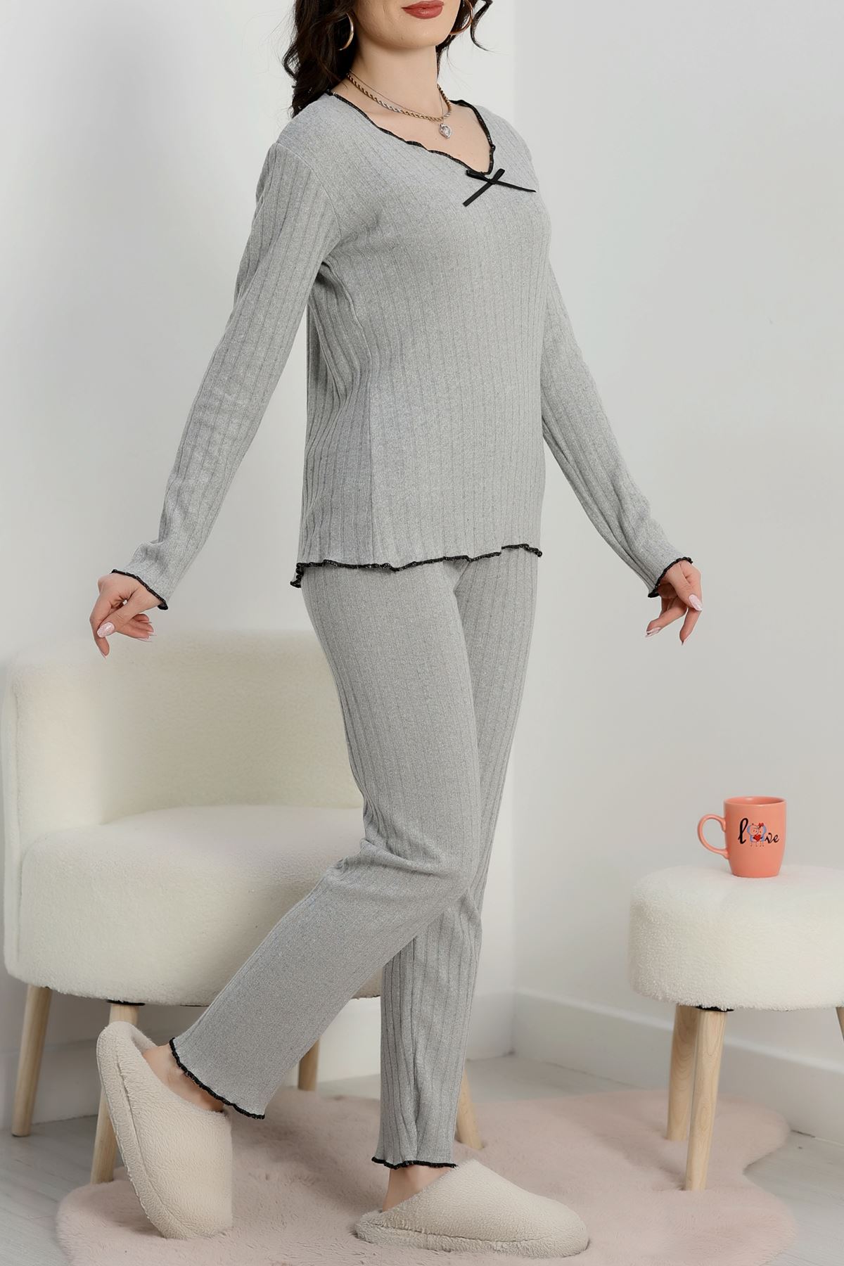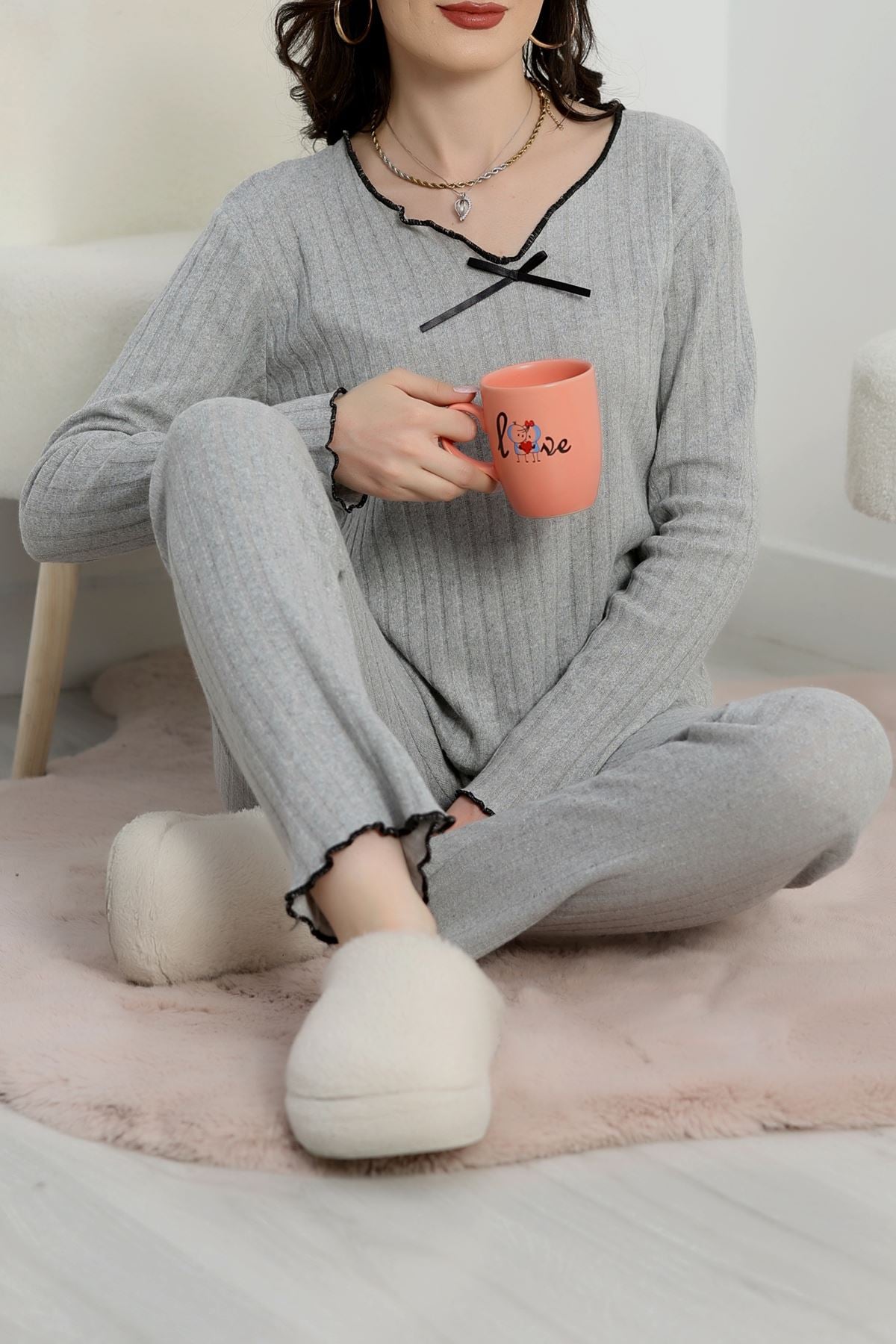 Fitilli İnterlok Kurdeleli Pijama Takımı Gri - 70796.1048.