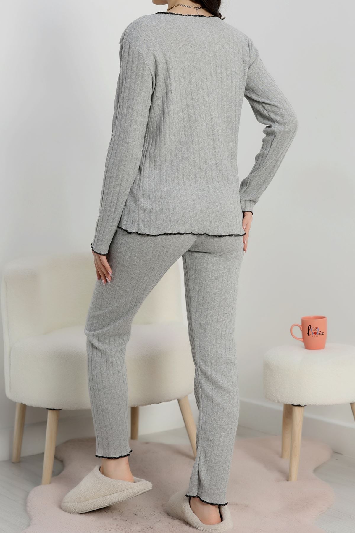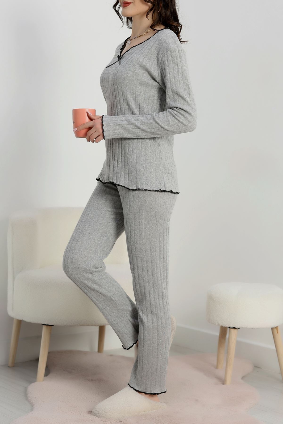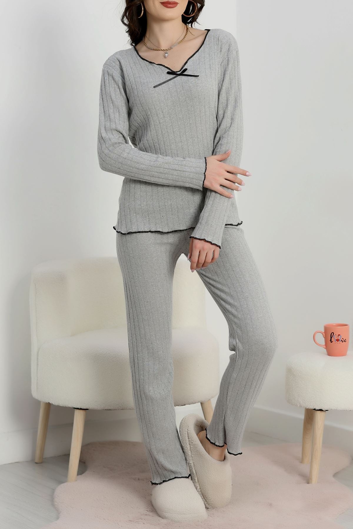 Fitilli İnterlok Kurdeleli Pijama Takımı Gri - 70796.1048.