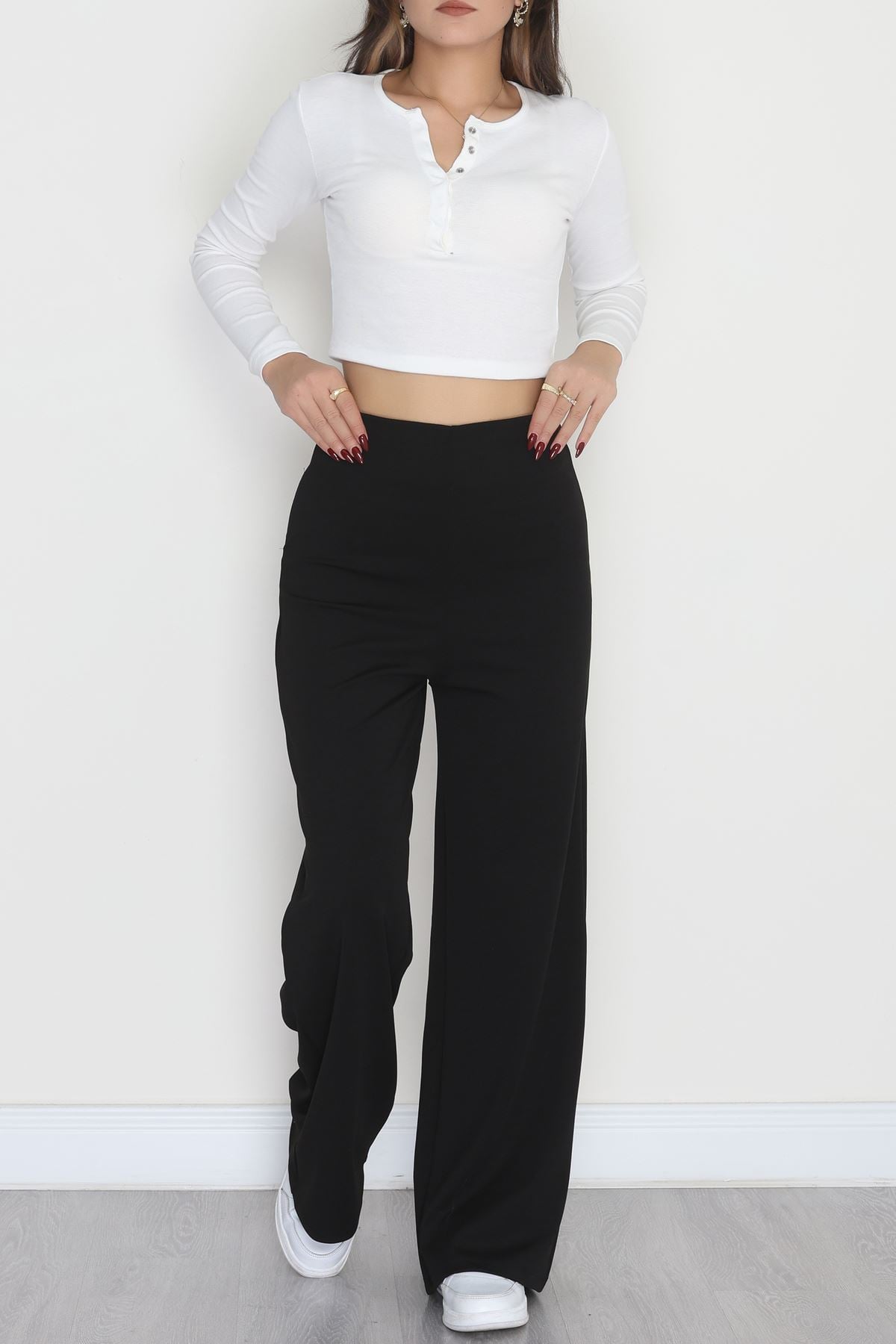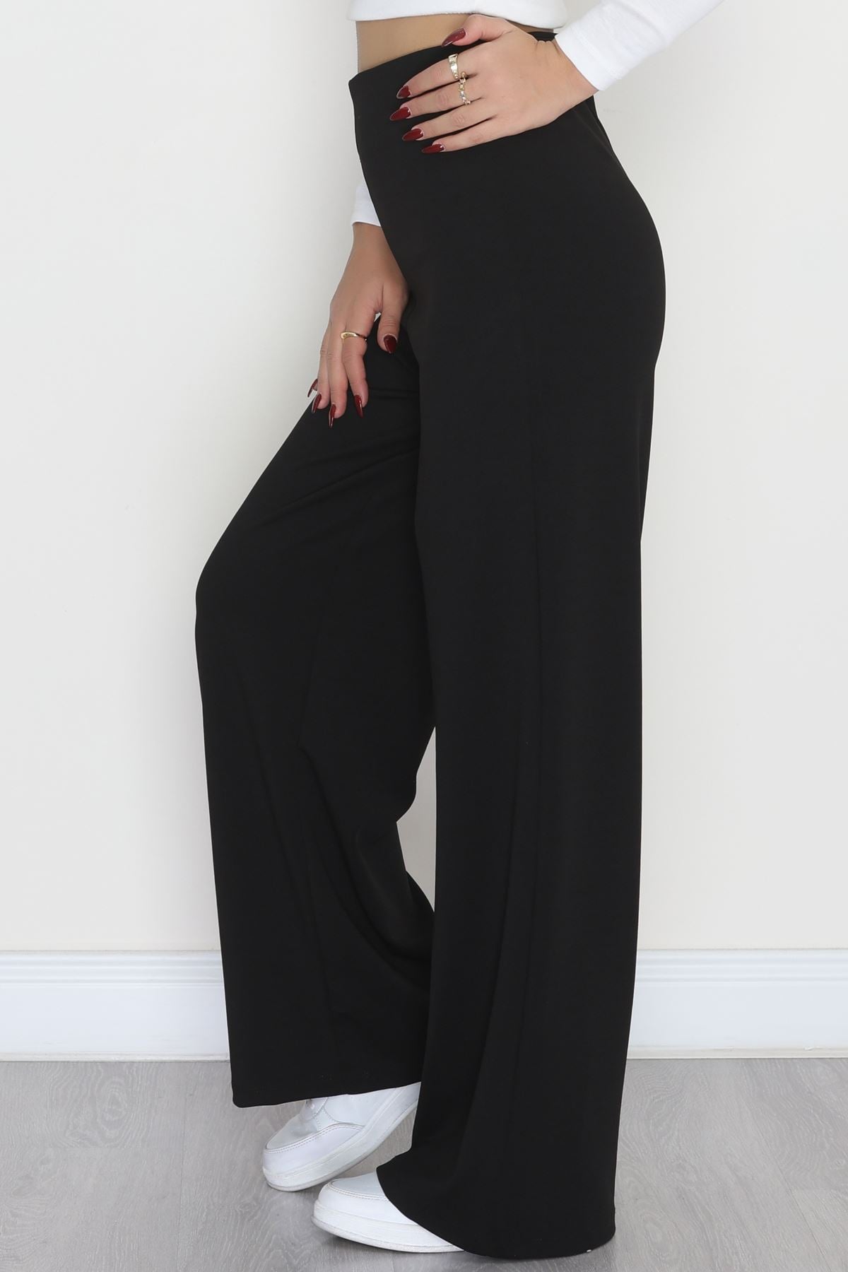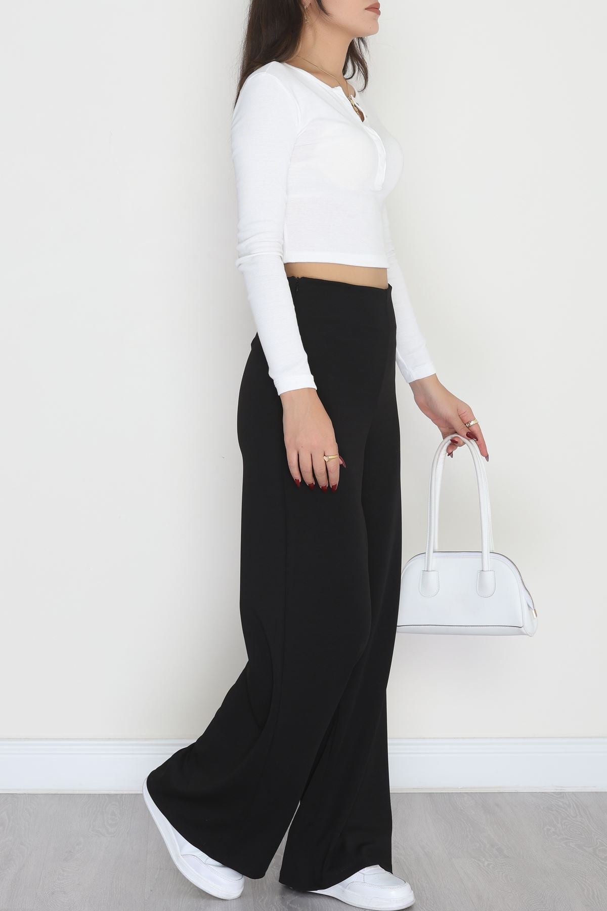 Full Likra İthal Krep Yandan Fermuarlı Pantolon Siyah - 90161.1837.