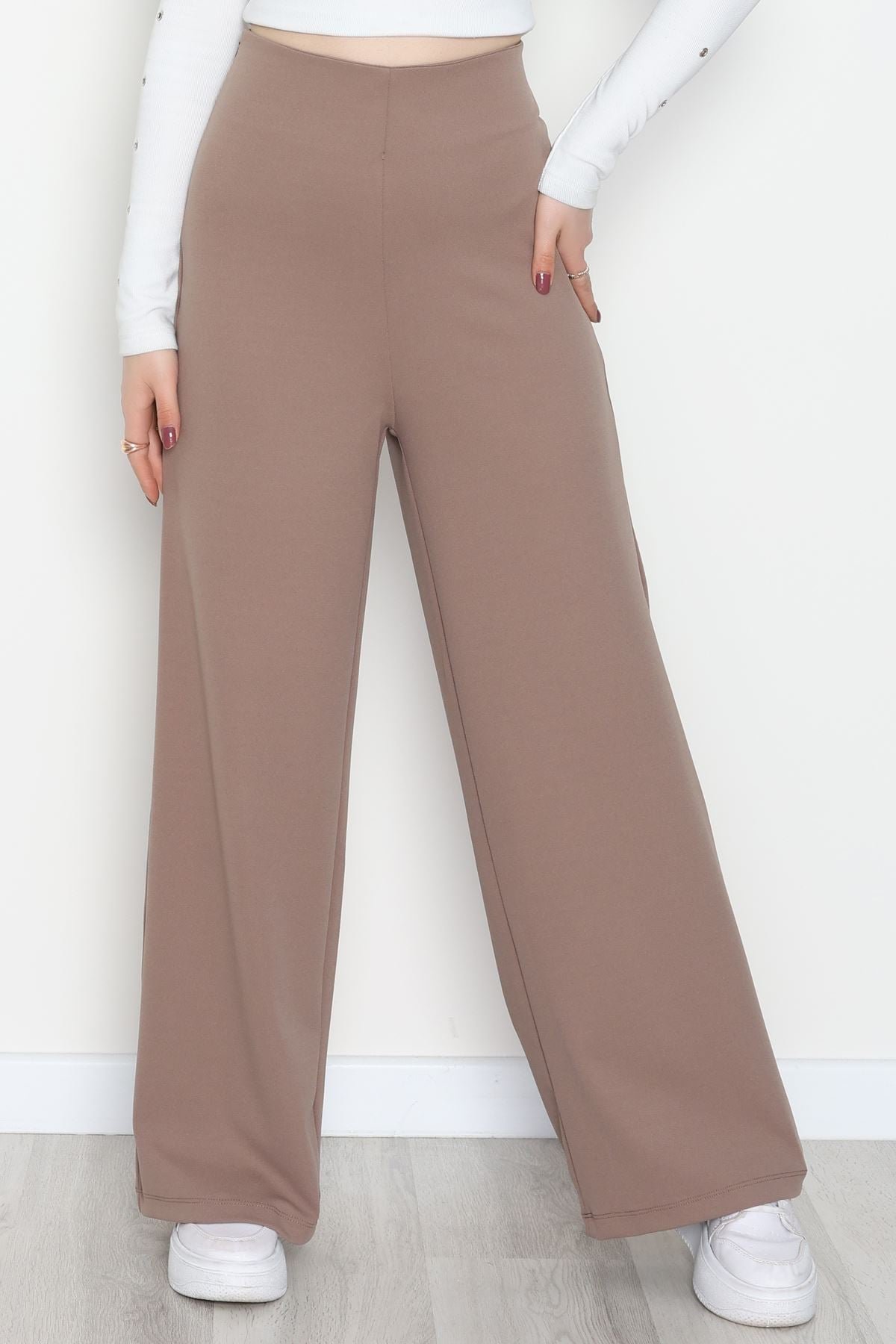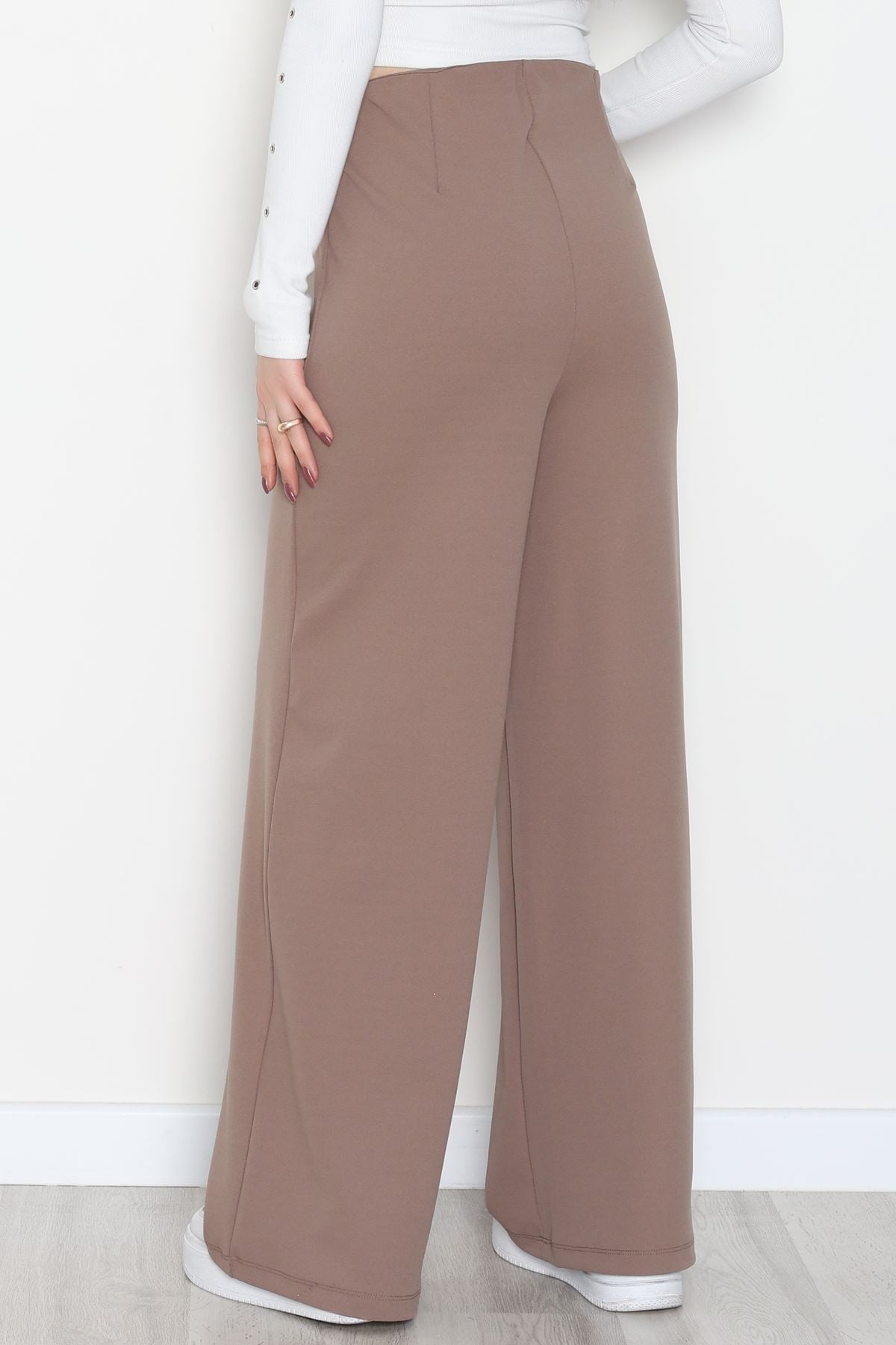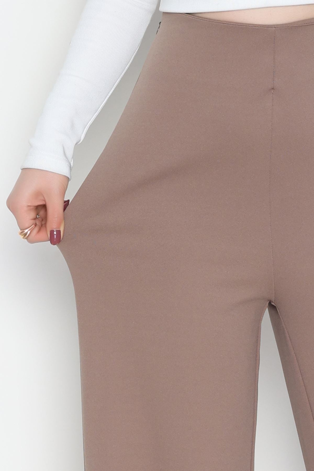 Full Likra İthal Krep Yandan Fermuarlı Pantolon Vizon - 90161.1837.