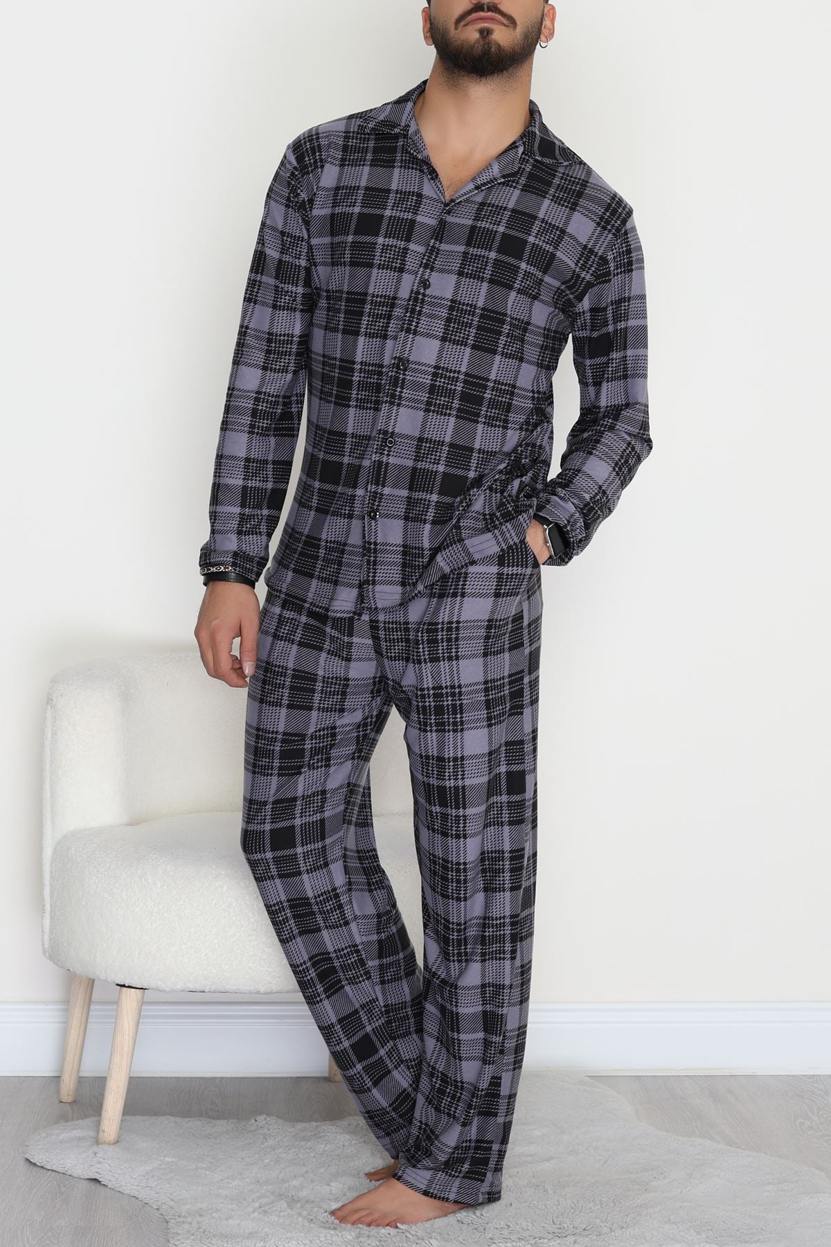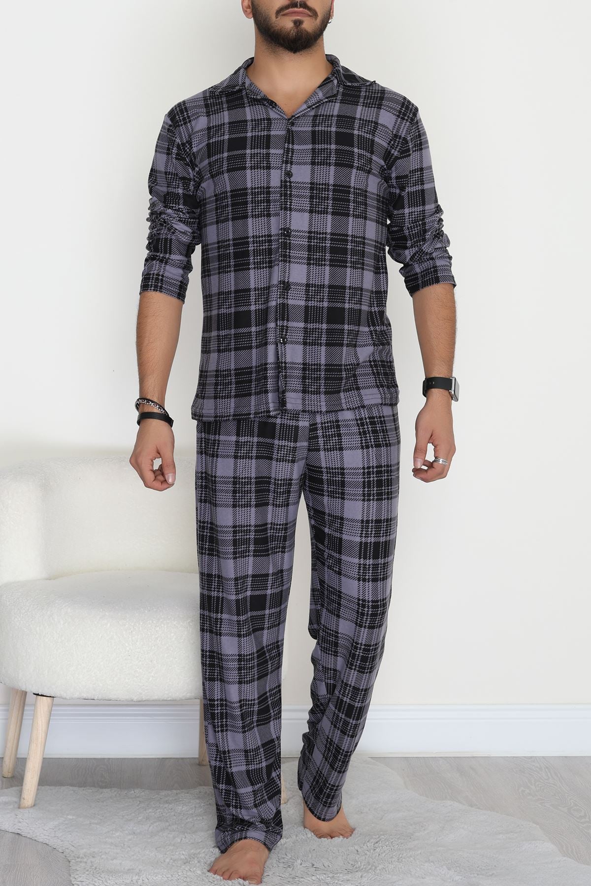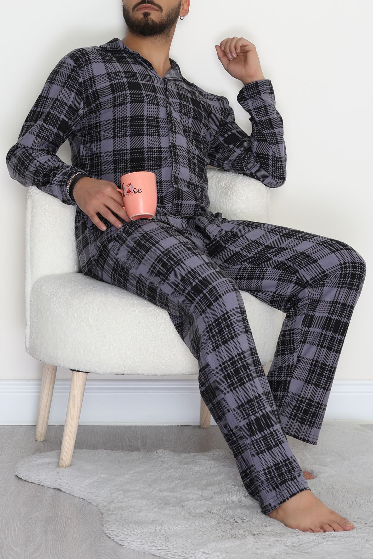 Süet Düğmeli Erkek Pijama Takımı Gri - 755.1287.