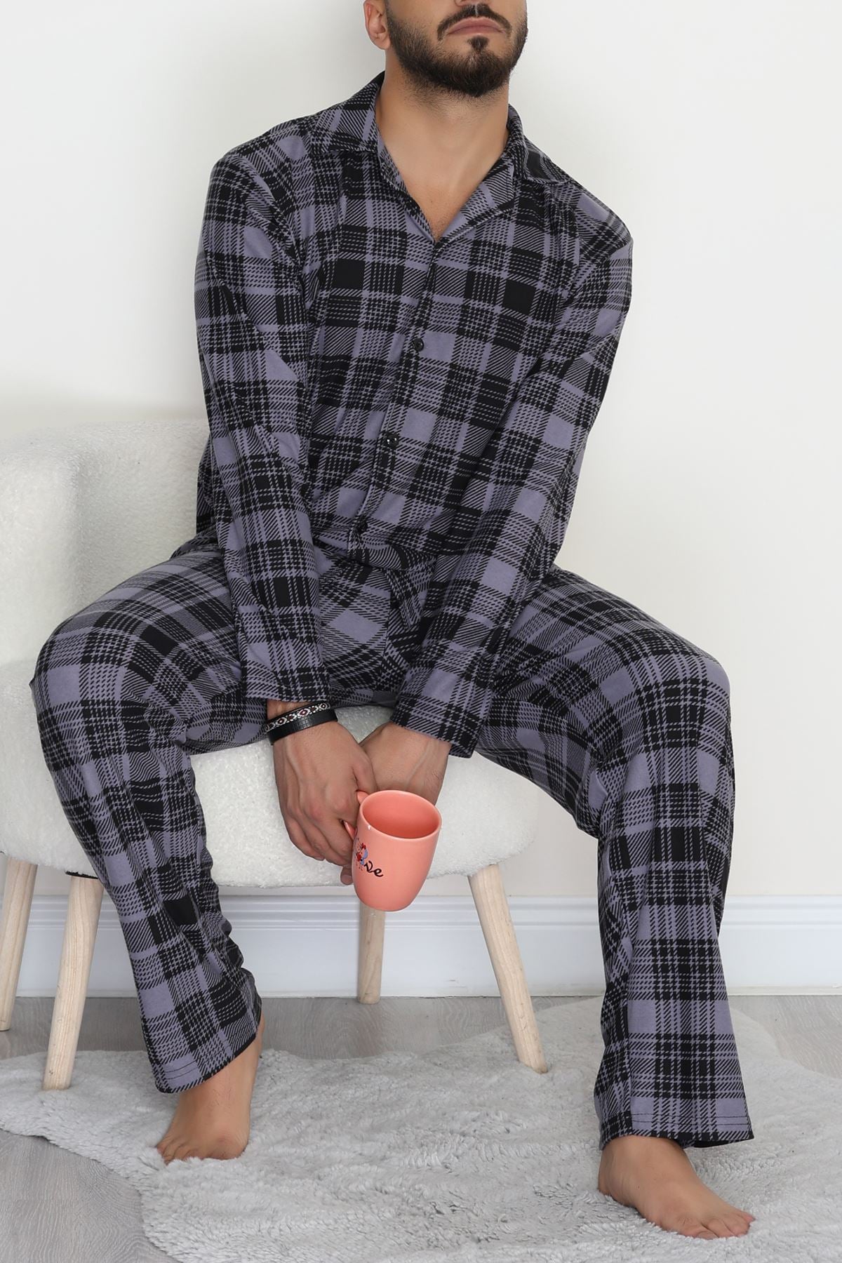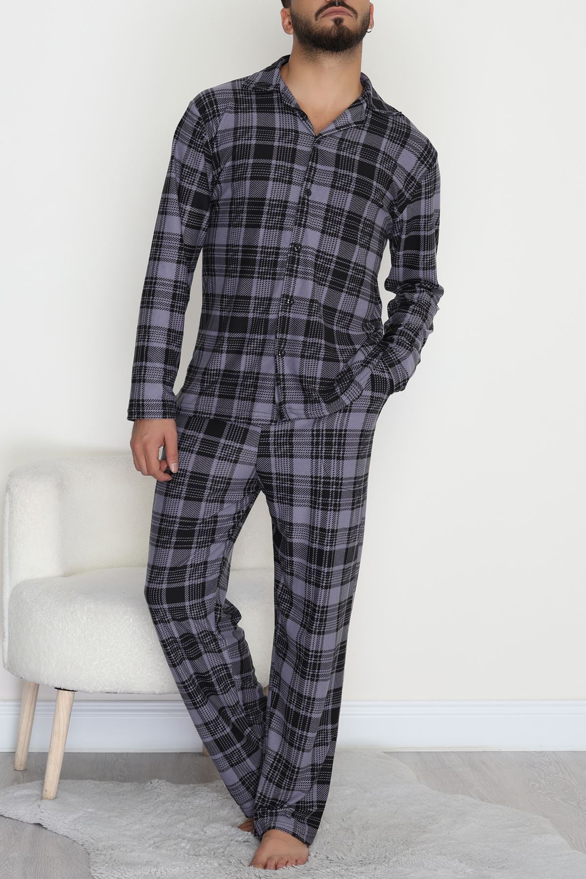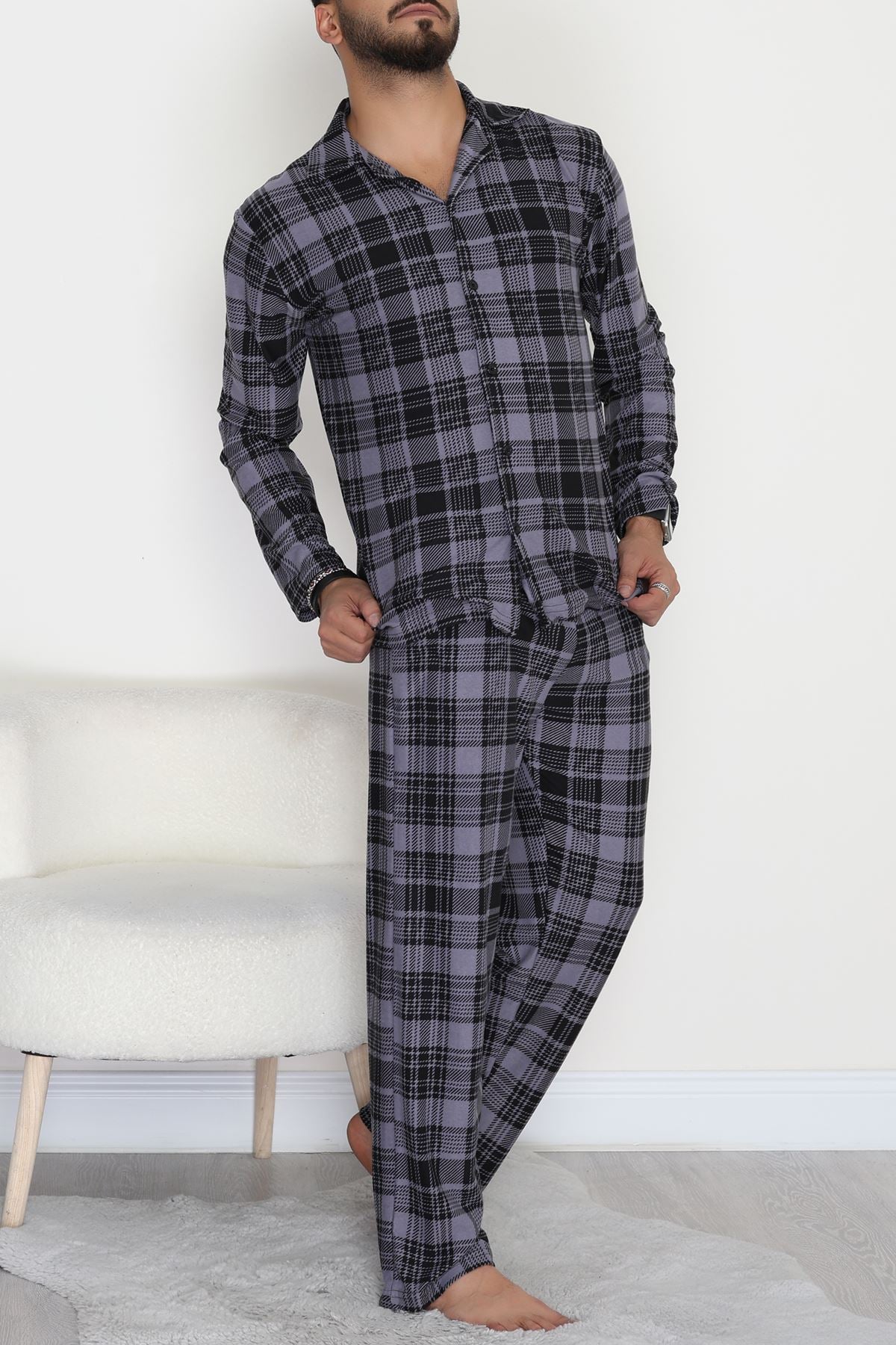 Süet Düğmeli Erkek Pijama Takımı Gri - 755.1287.