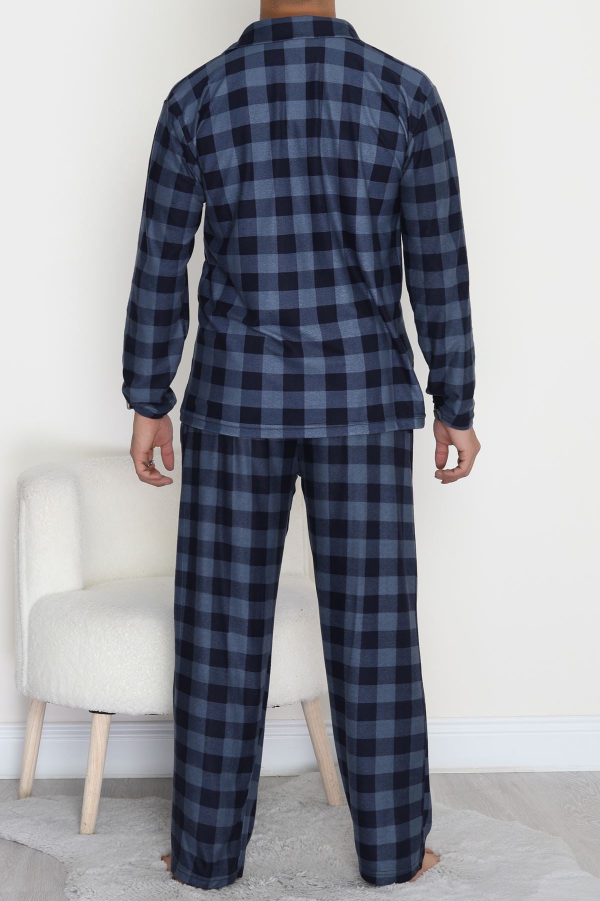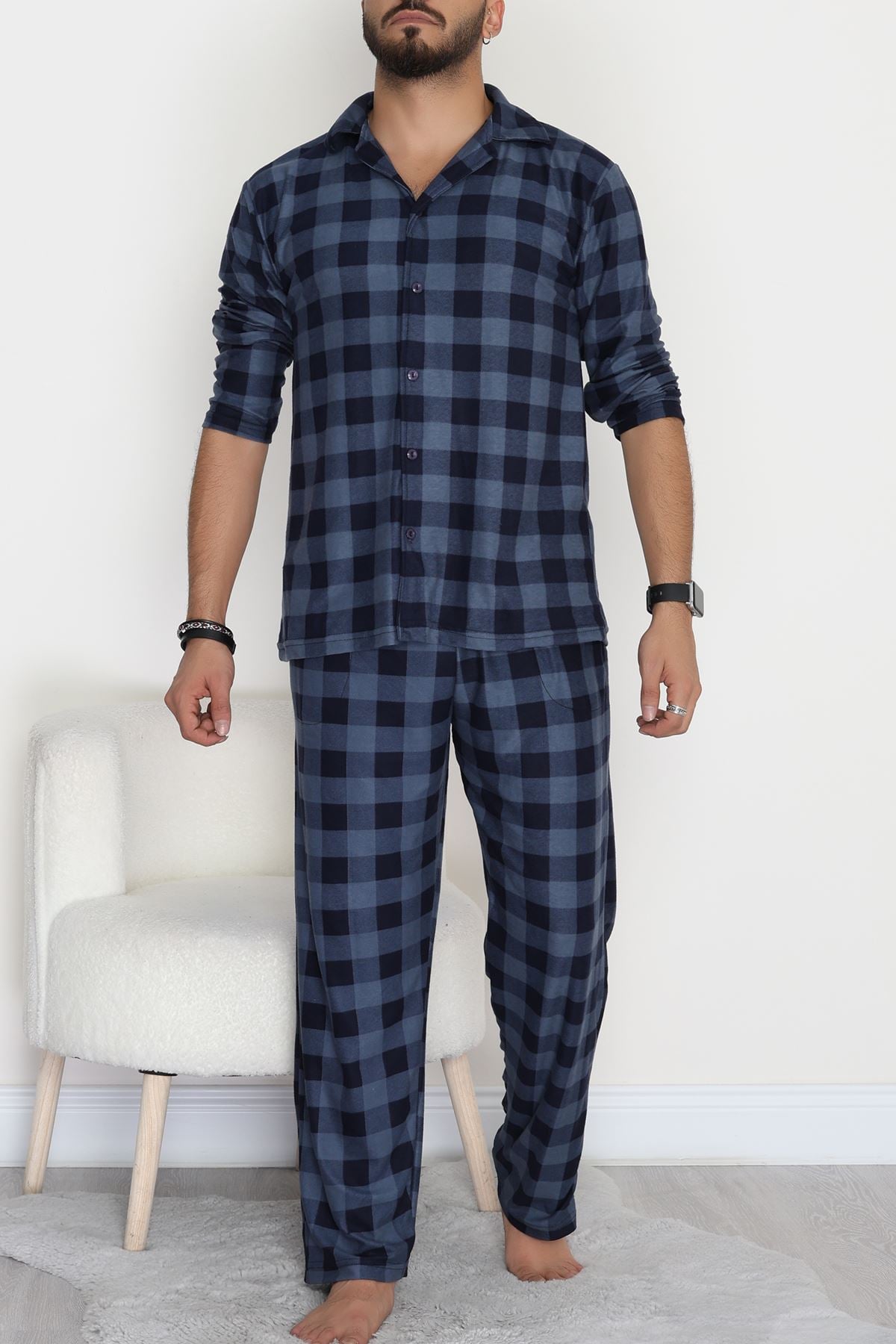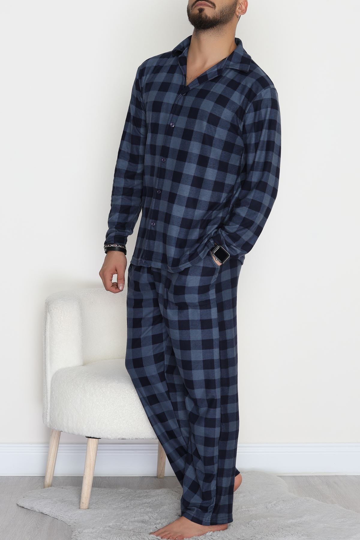 Süet Düğmeli Erkek Pijama Takımı Lacivertkare - 755.1287.