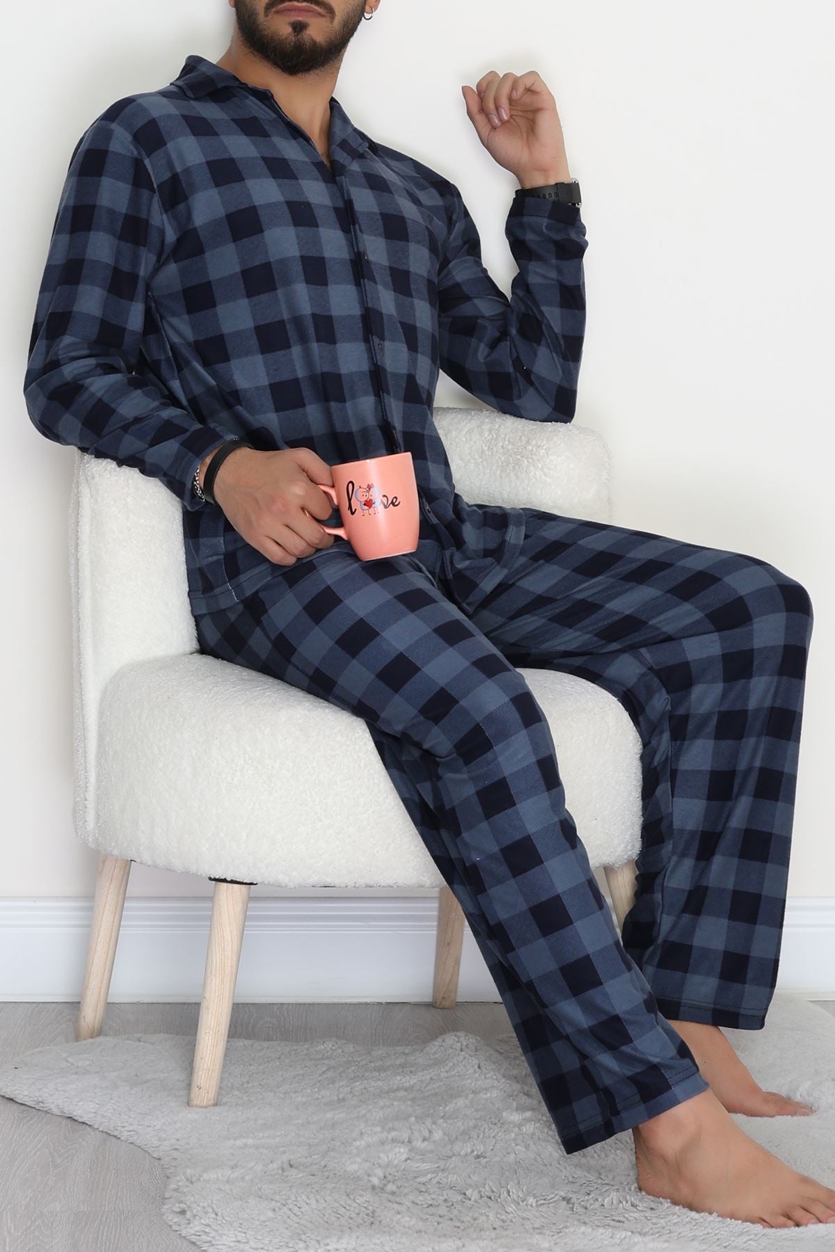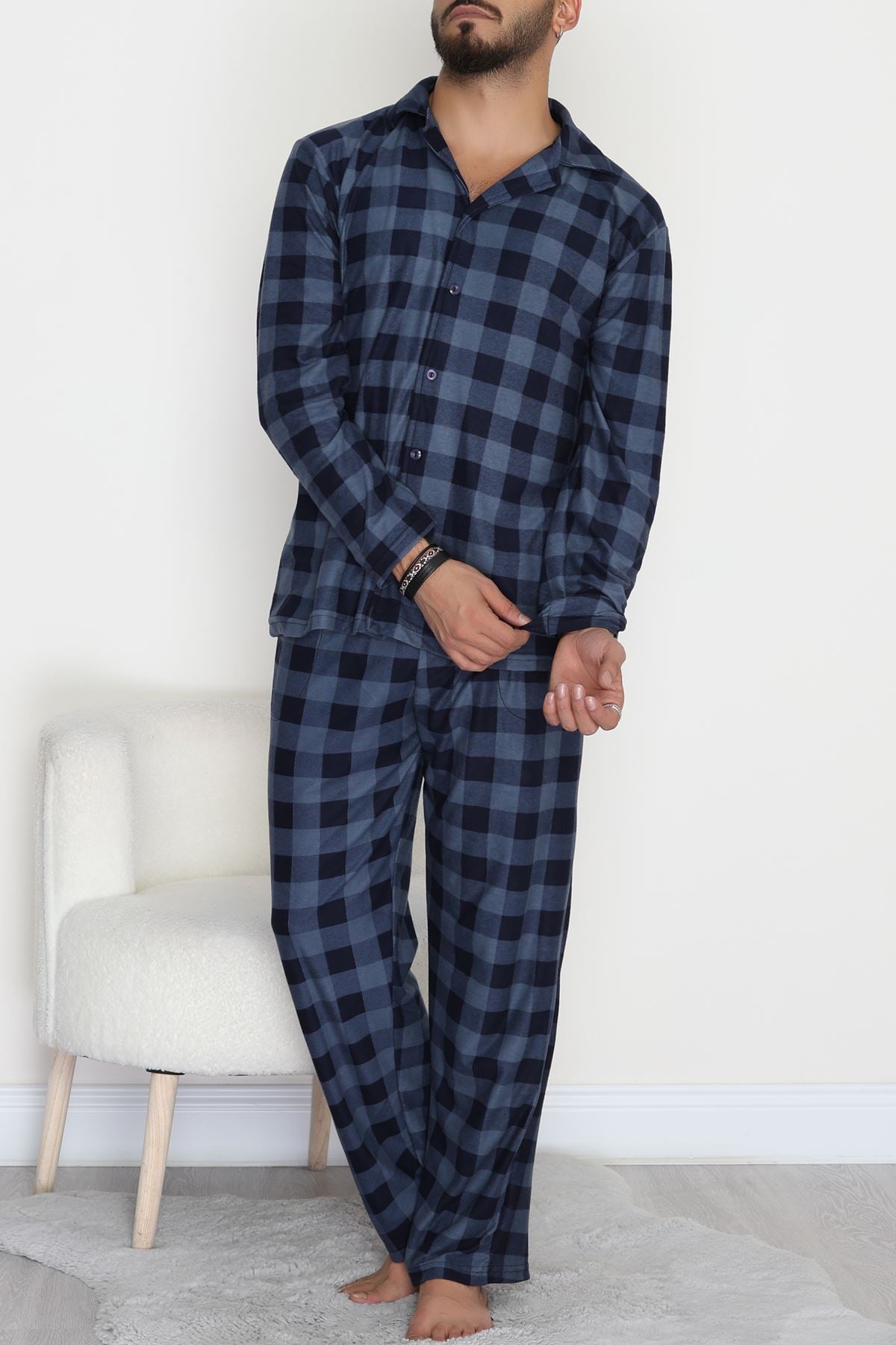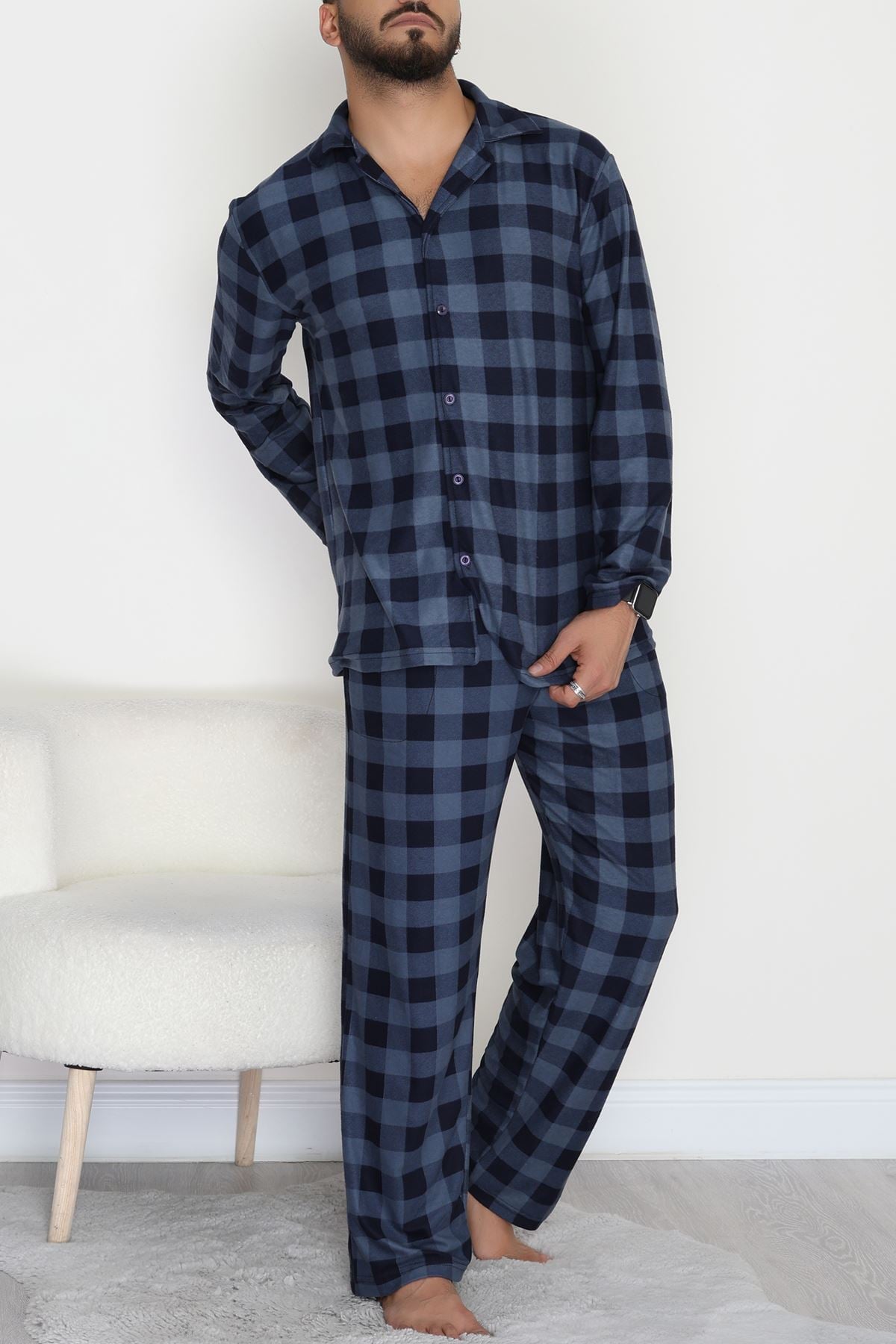 Süet Düğmeli Erkek Pijama Takımı Lacivertkare - 755.1287.