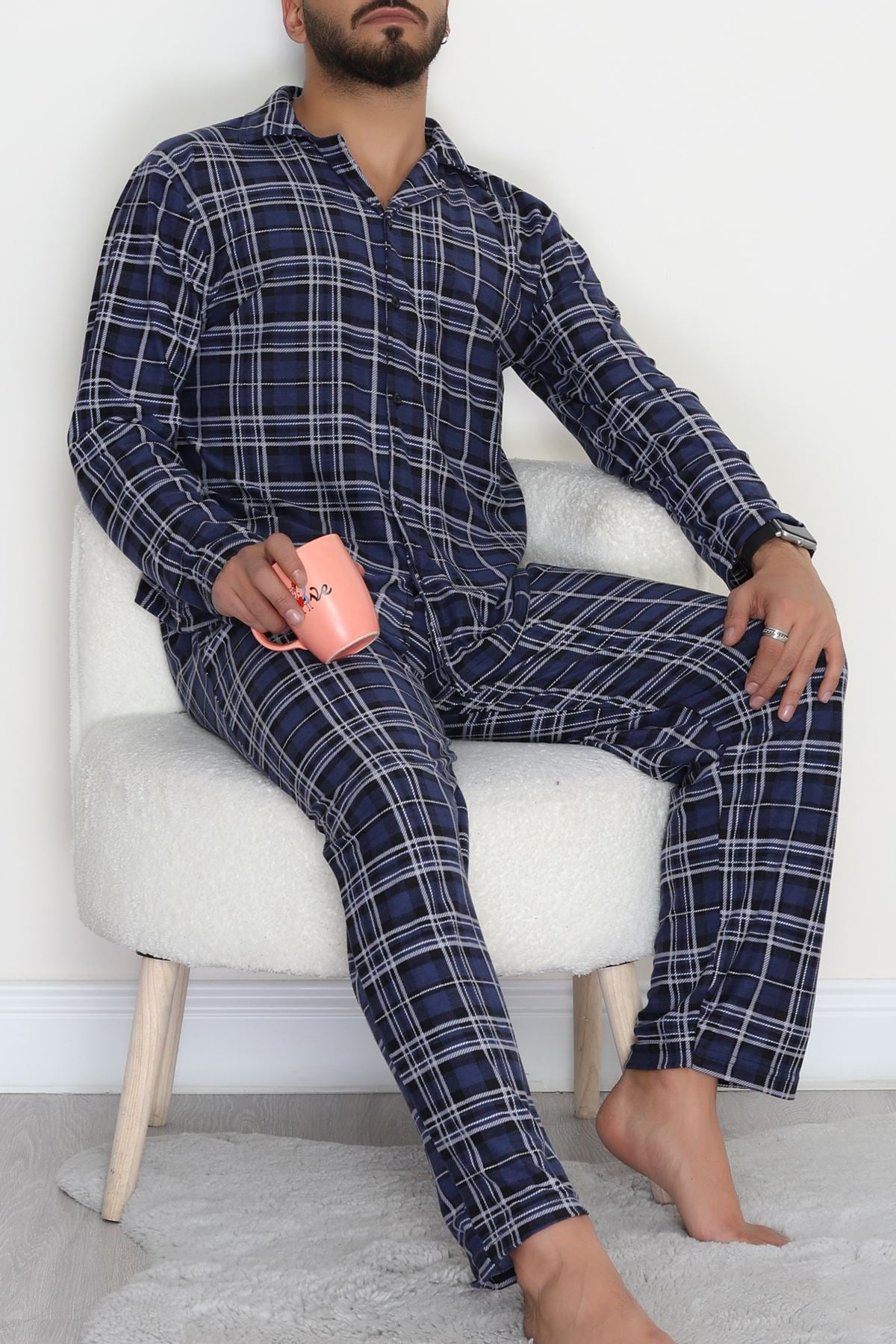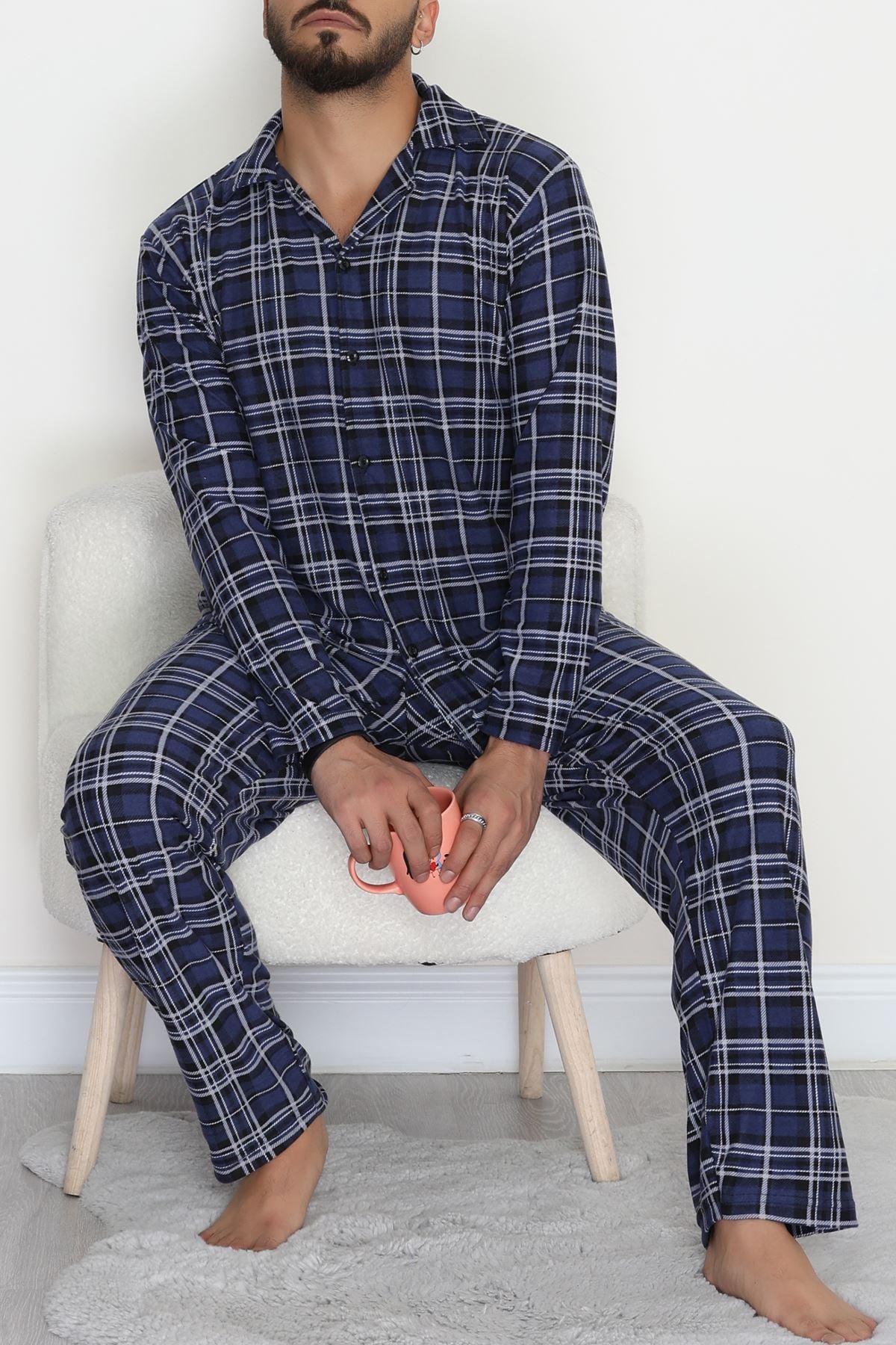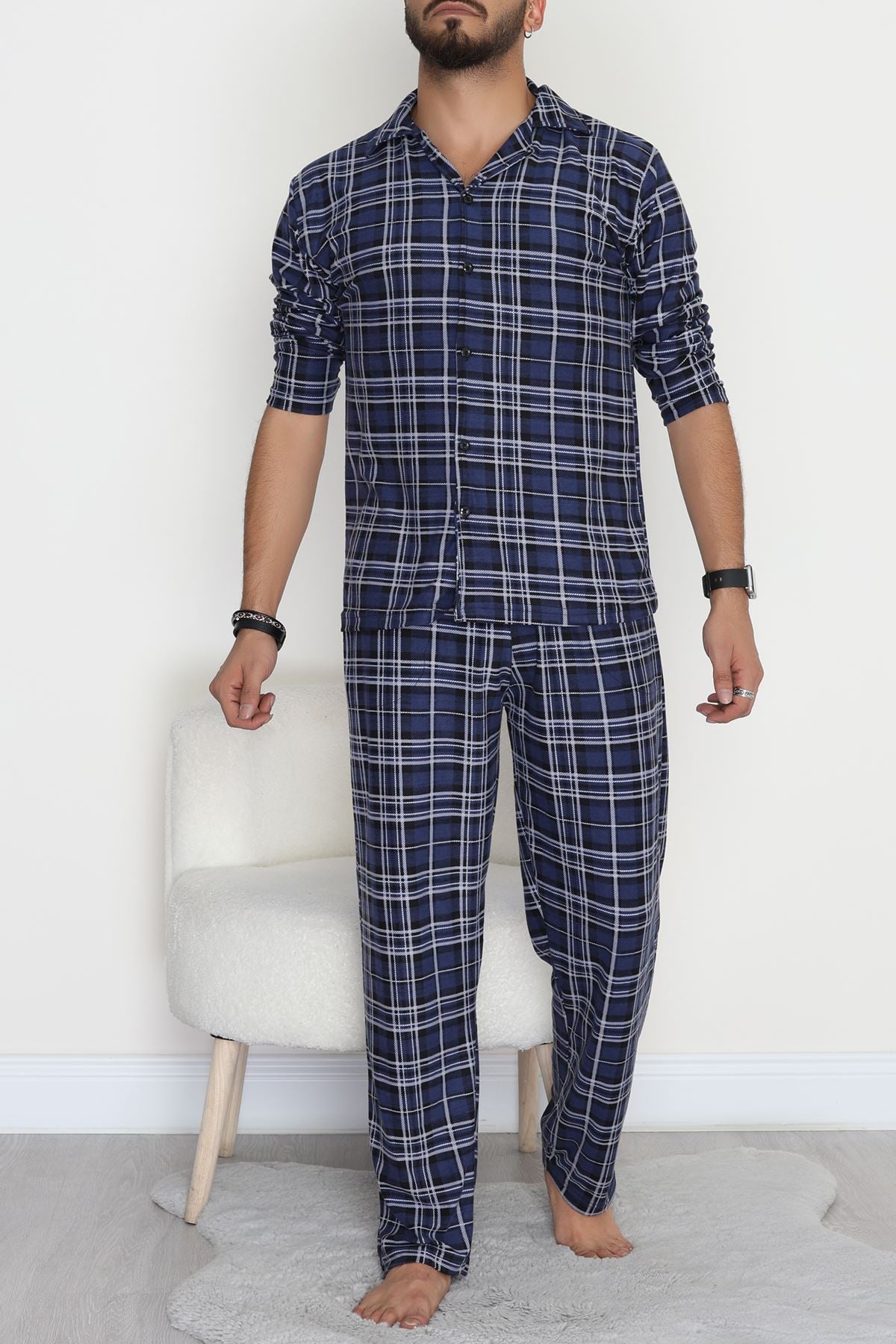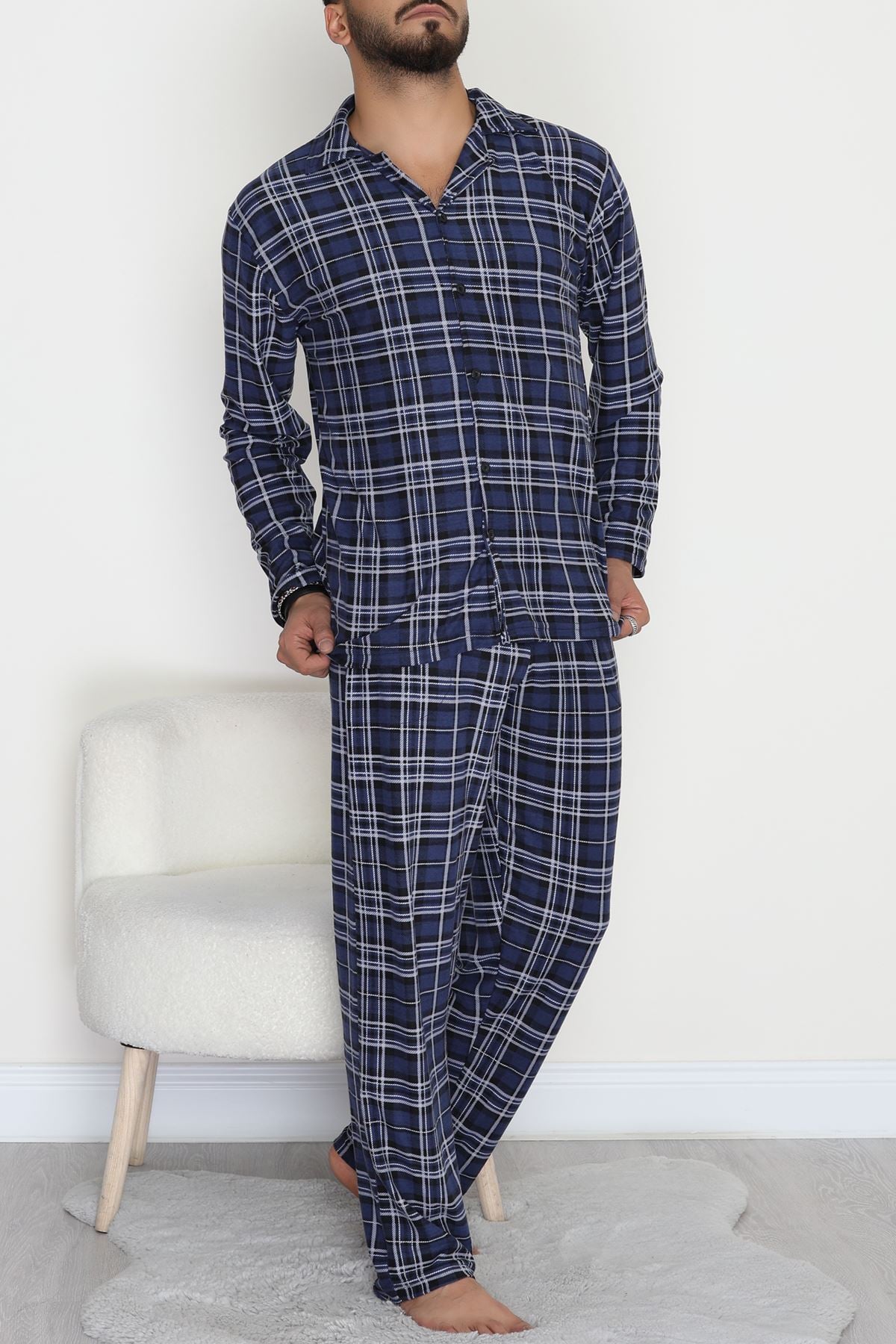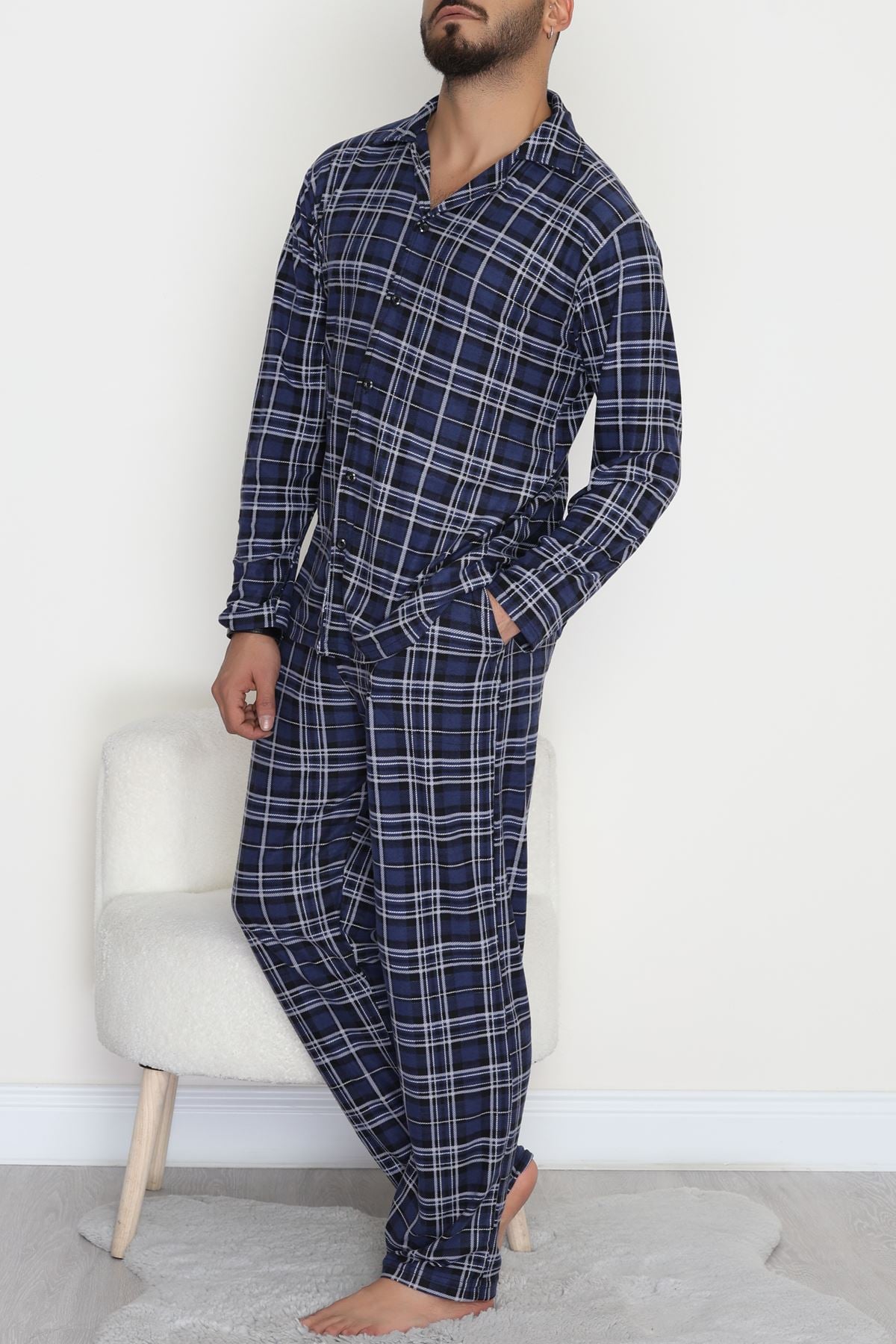 Süet Düğmeli Erkek Pijama Takımı Maviekose - 755.1287.