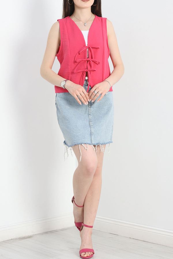 Dabıl Kumaş Bağlamalı Astarlı Yelek Acıkahve - 31359.1397.