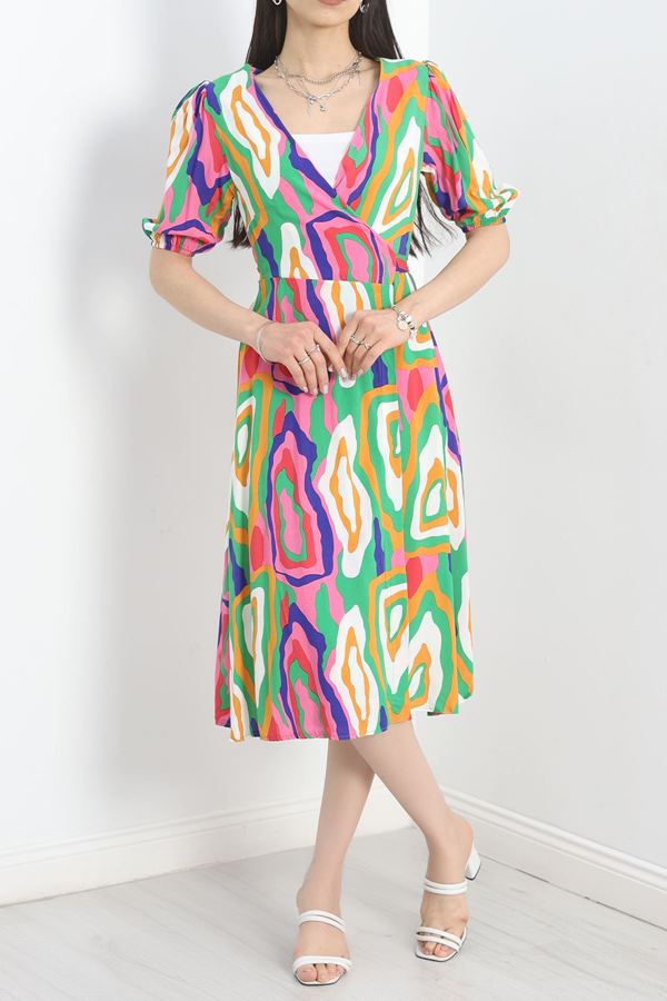 Asimetrik Yaka Sandy Elbise Yağyeşili - 42570.1949.