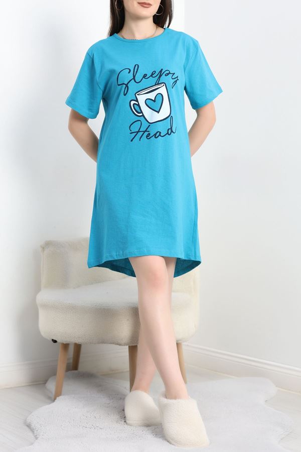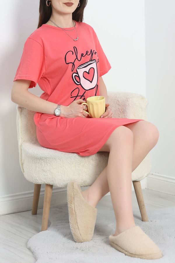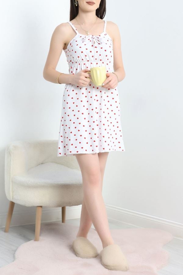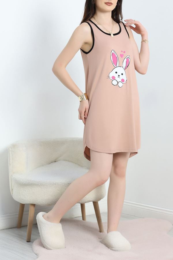 Biyeli Baskılı Gecelik Elbise Bej - 50330.1857.