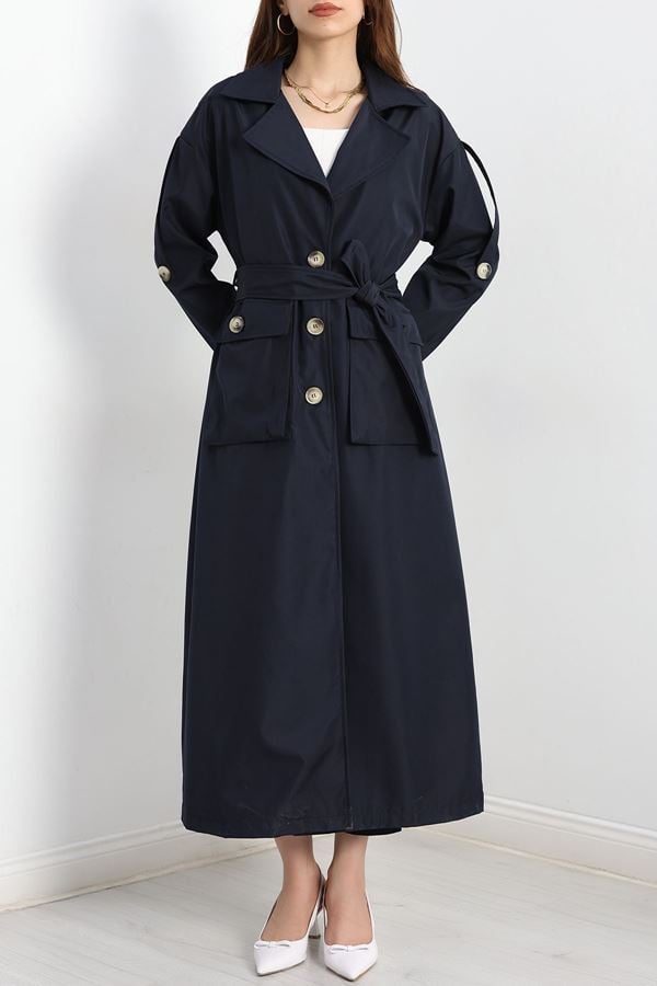 Astarsız Bel Lastikli Trençkot Lacivert - 31136.147.