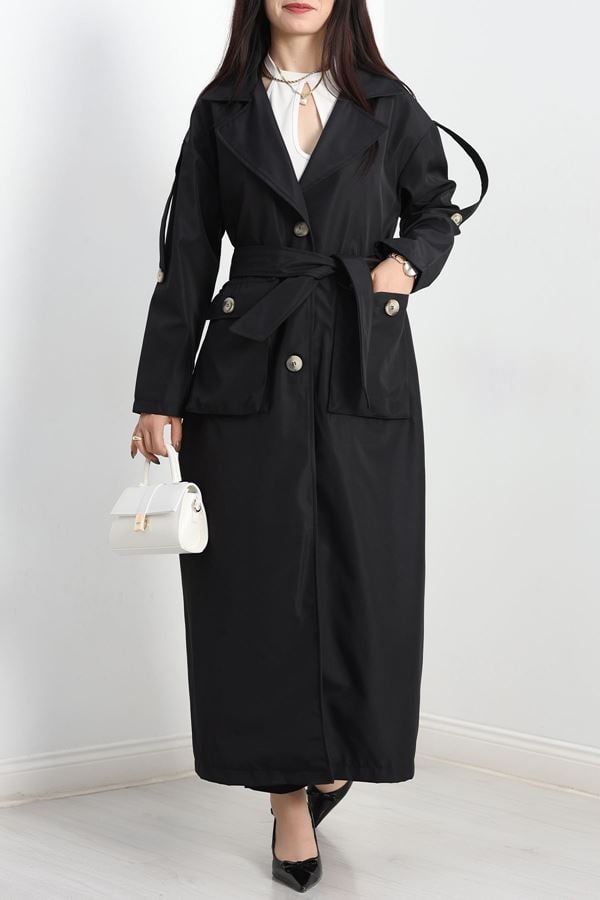 Astarsız Kuşaklı Uzun Trençkot Siyah - 31477.147.