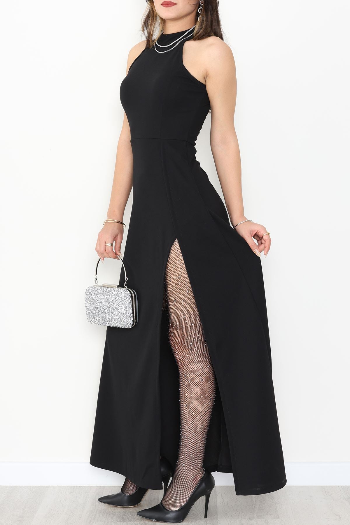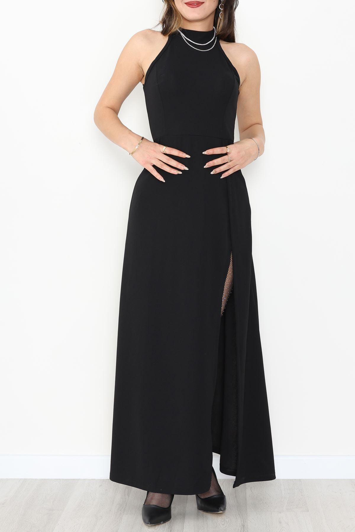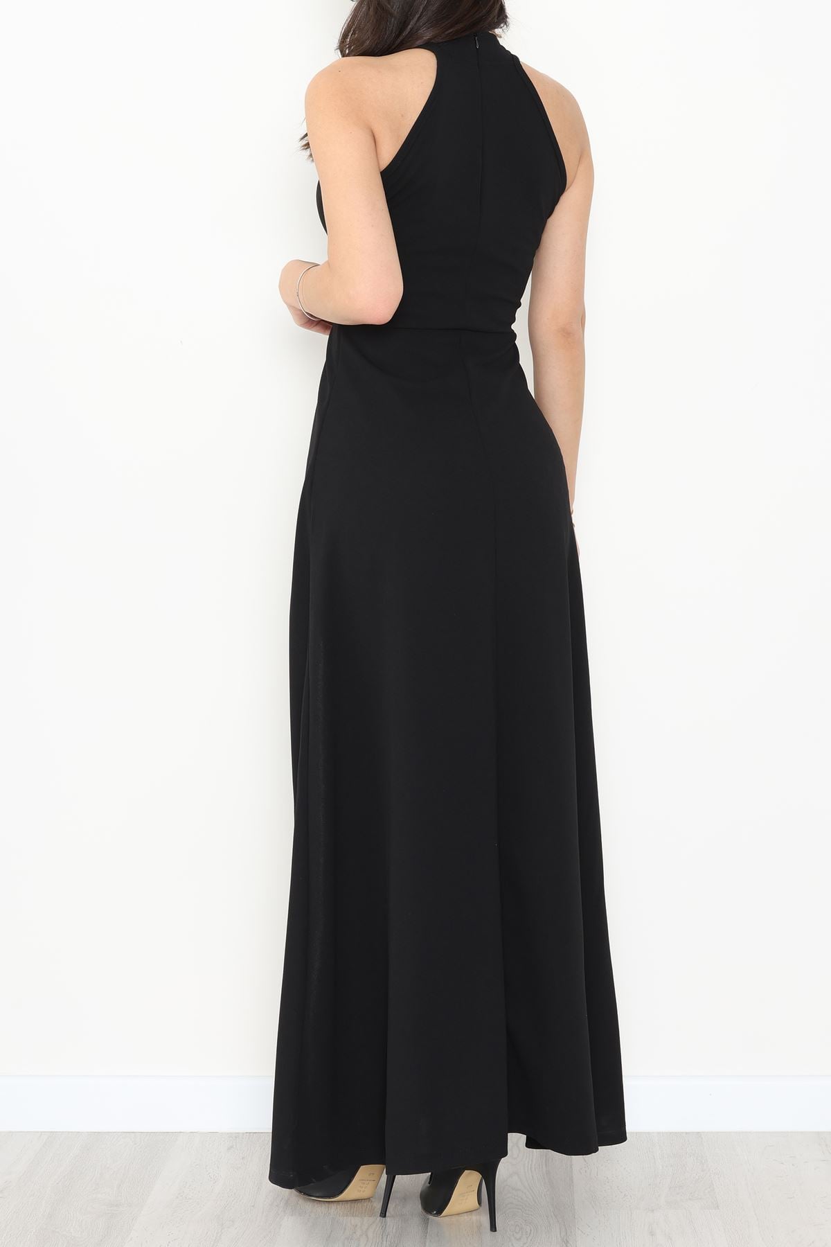 Halter Yaka İthal Krep Elbise Siyah - 42686.1256.