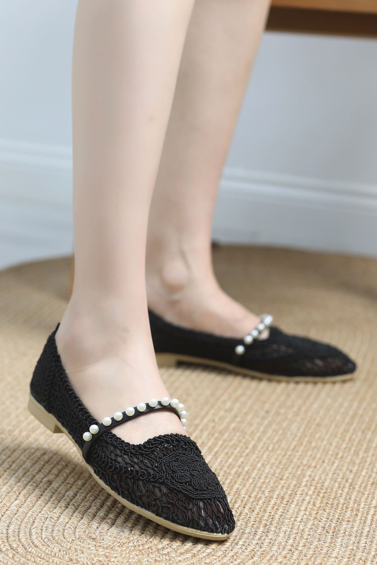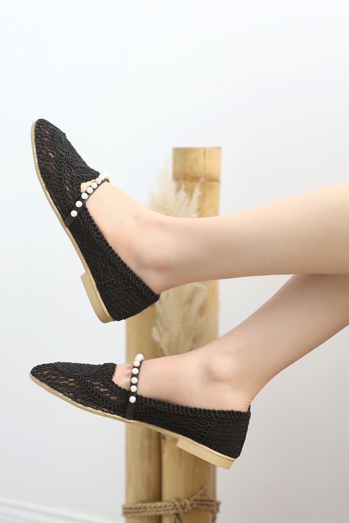 İnci Detay Nakış Babet Siyah - 30374.1846.