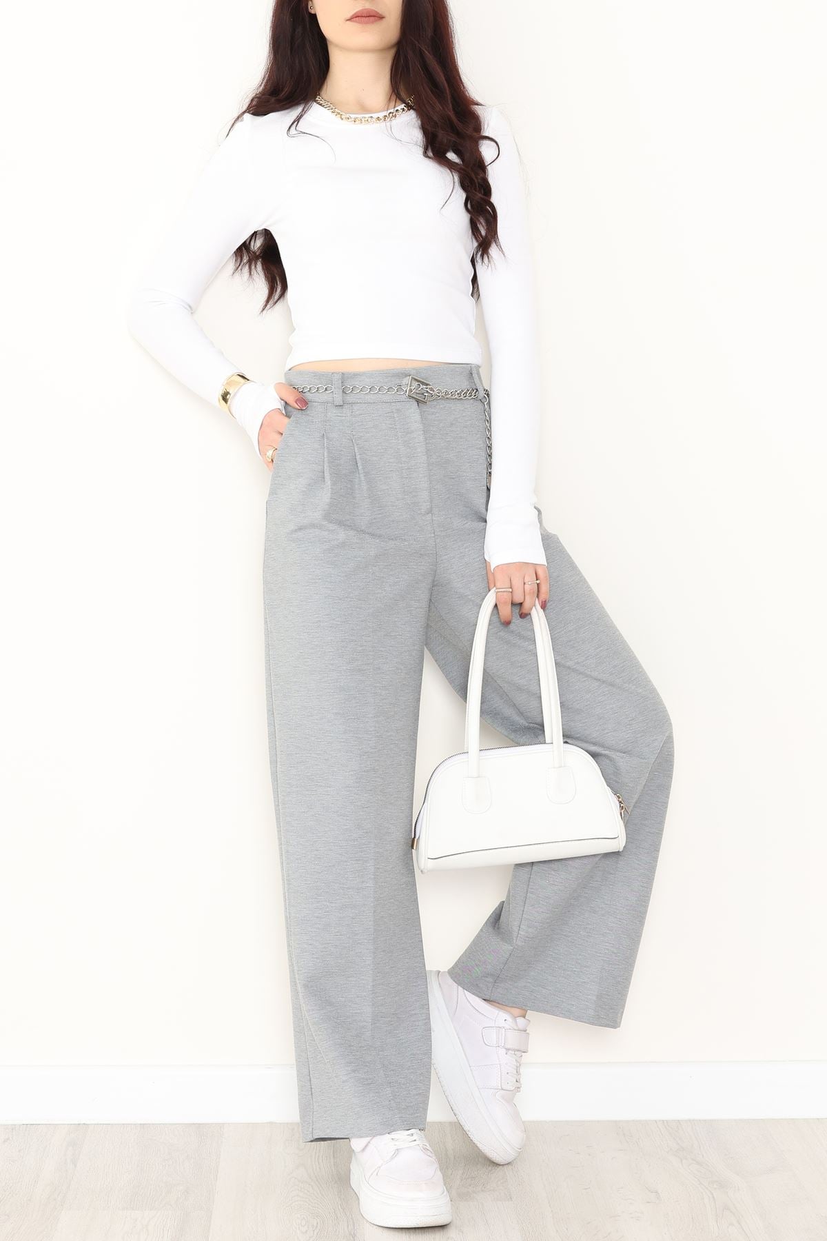 İnterlok Kumaş Bol Paça Pantolon Gri - 51049.2061.
