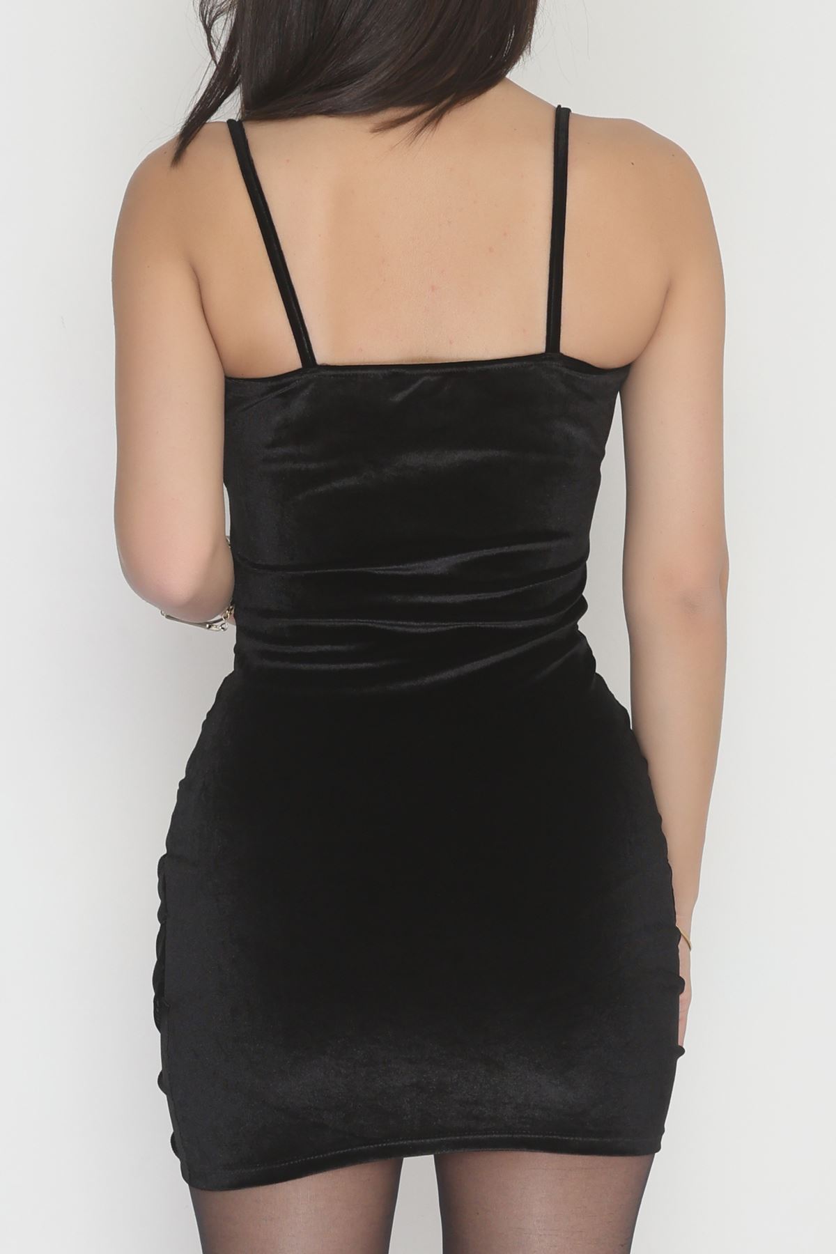 İp Askılı Kadife Elbise Siyah - 1277.1595.