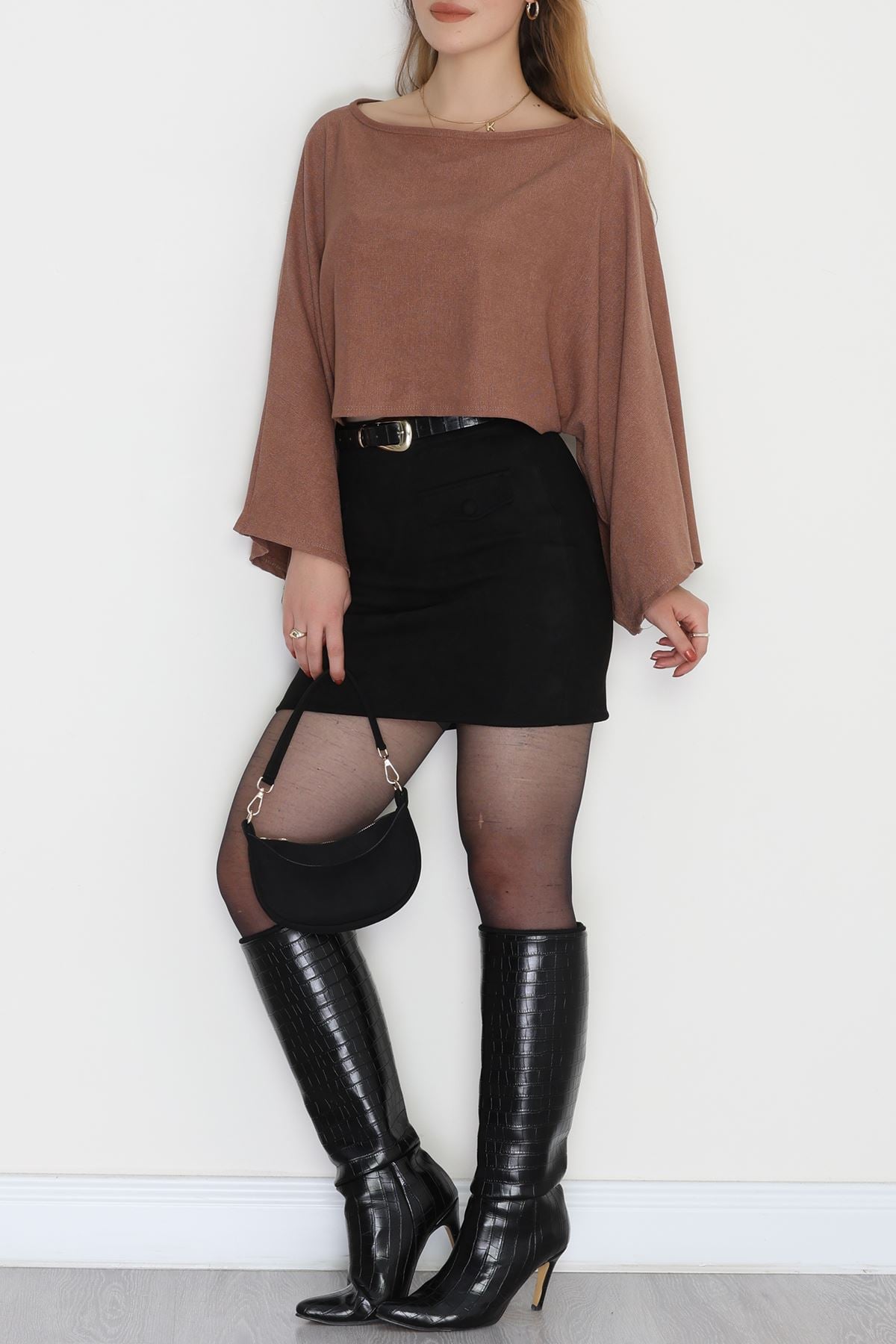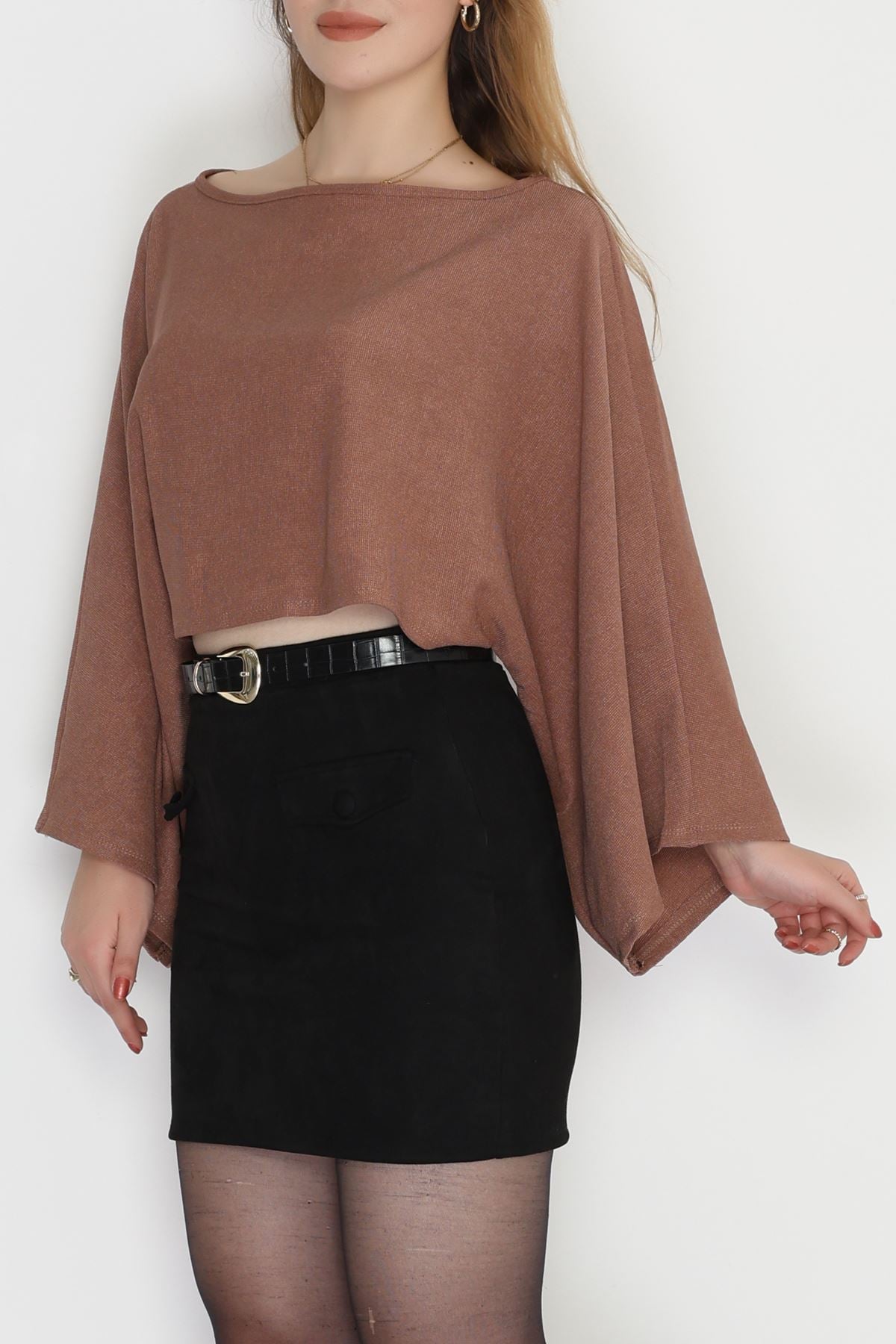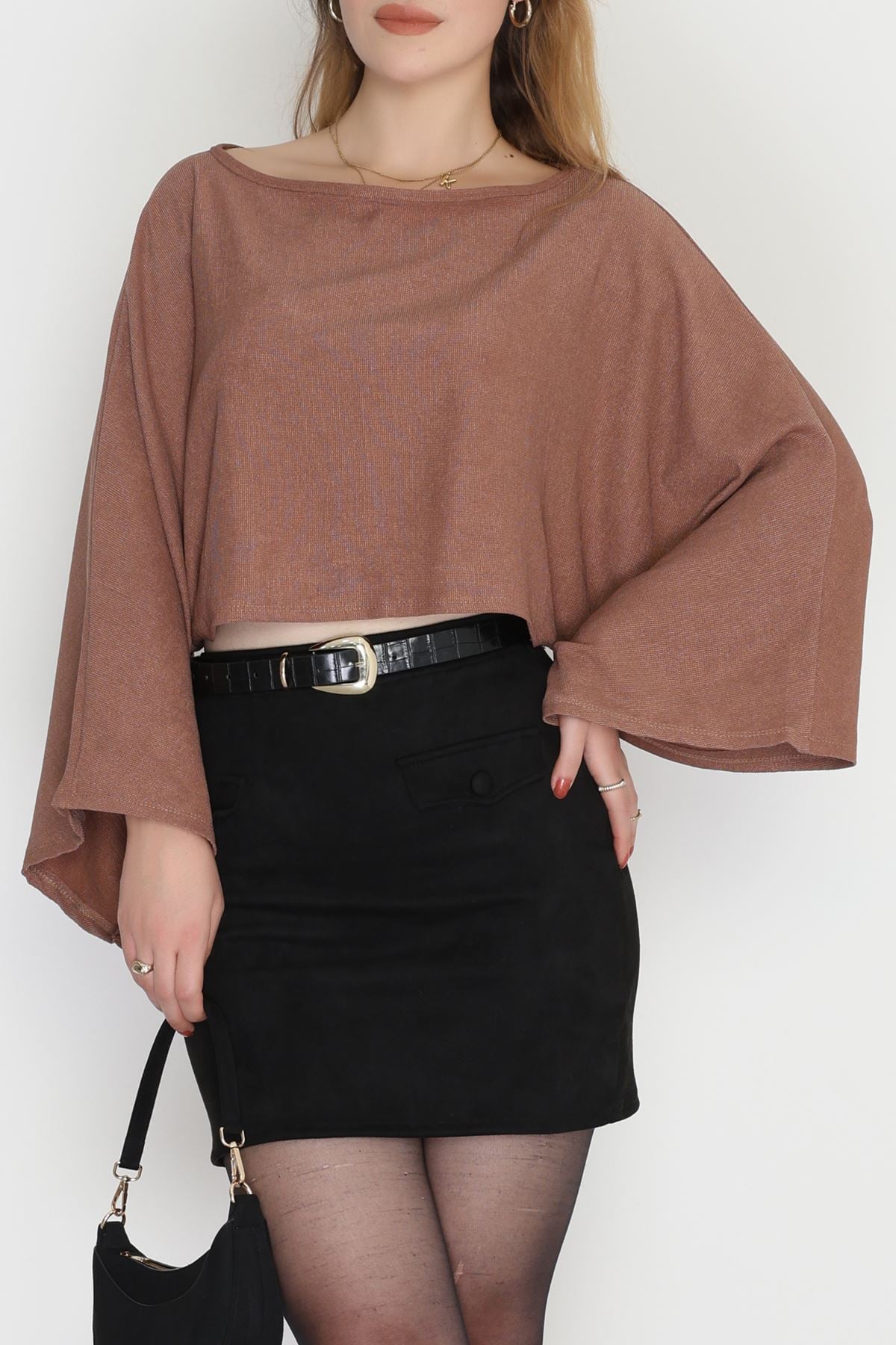 İthal Krep Yarasa Kol Bluz Açıkkahve - 70868.148.