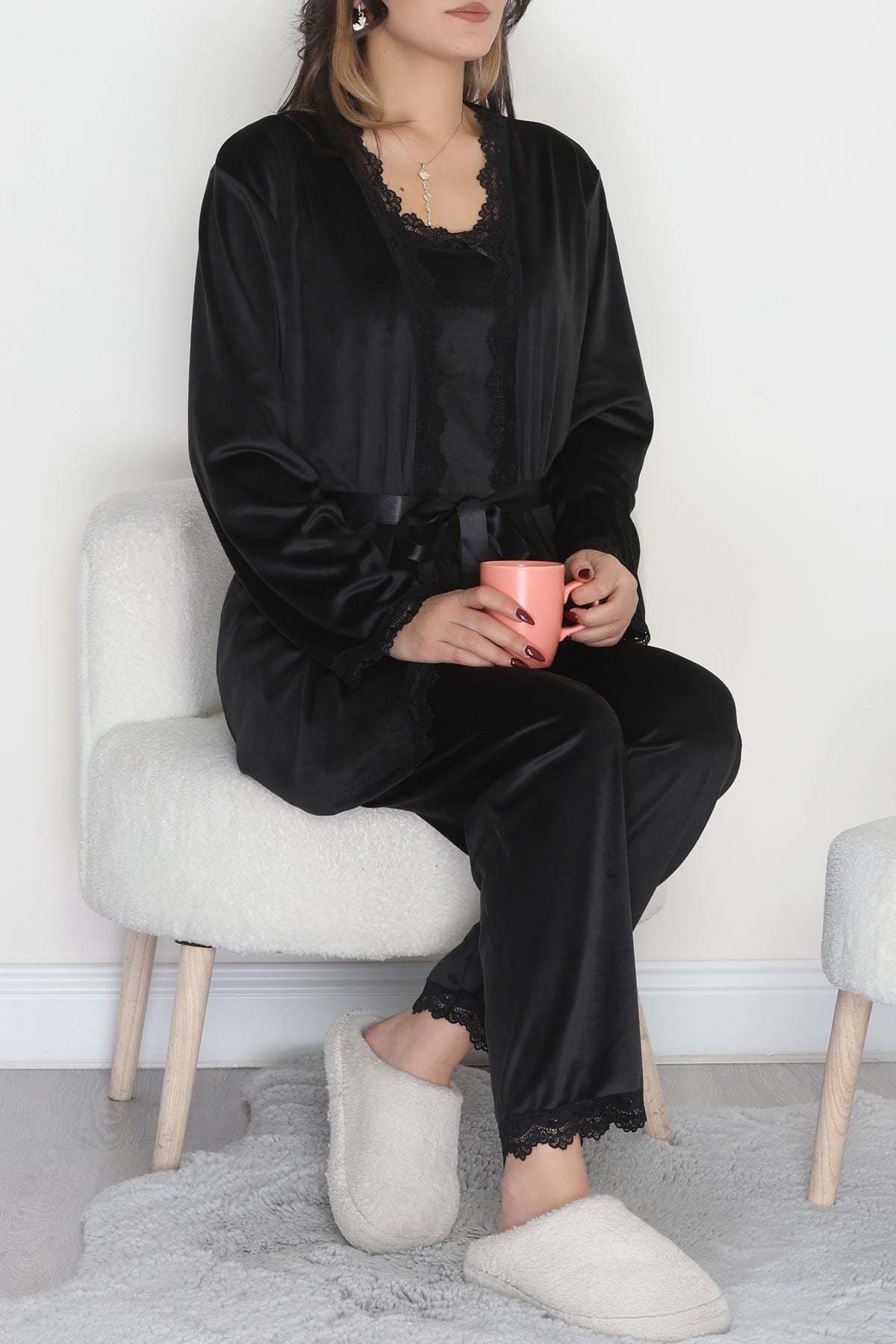Kadife 3'Lü Set Takım Siyah - 667.1287.