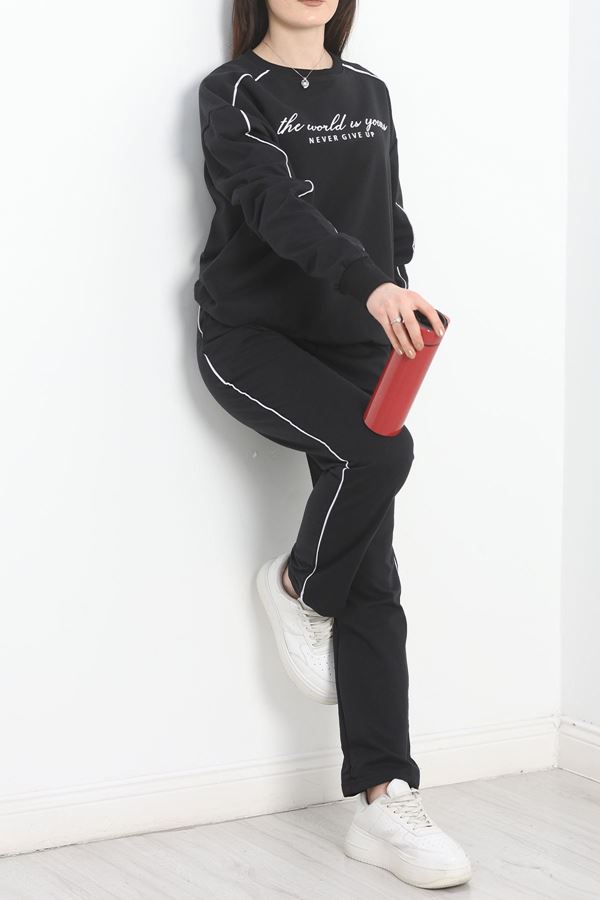3 İplik Baskılı Sweat Siyah - 42244.1878.