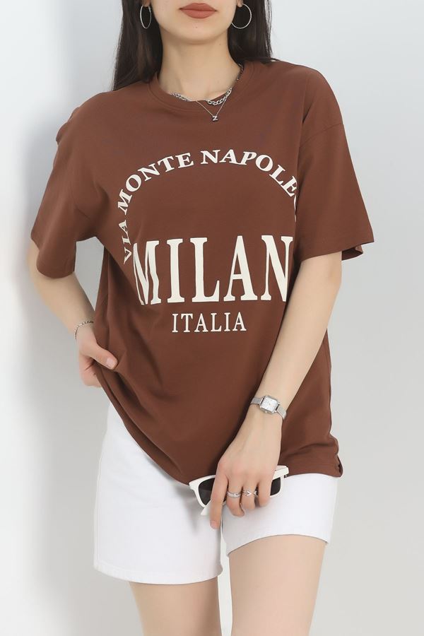 2 İplik Kapşonlu Baskılı Sweatshirt Acıkahve - 31315.1878.