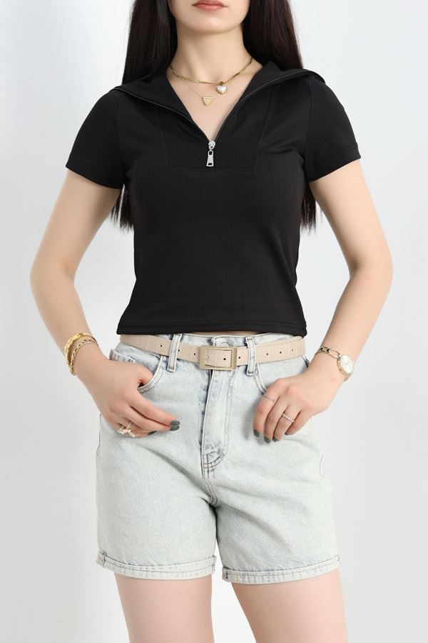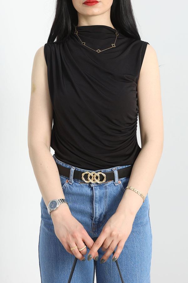 Toka Detaylı Sandy Bluz Siyah - 42666.1949.