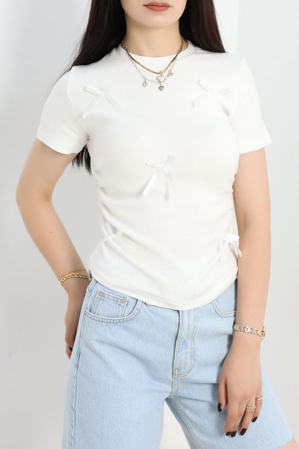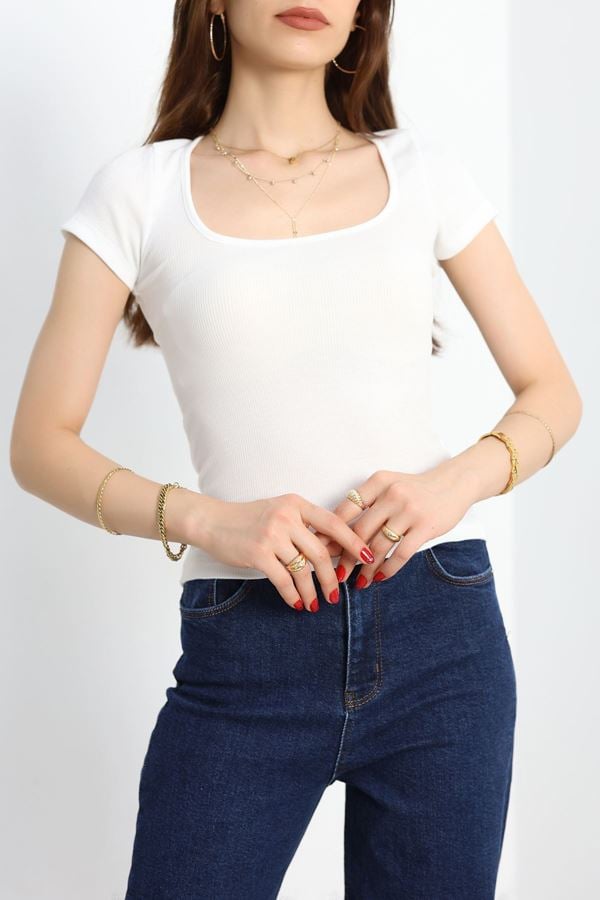 Madonna Yaka Büzgülü Bluz Beyaz - 7196.1918.