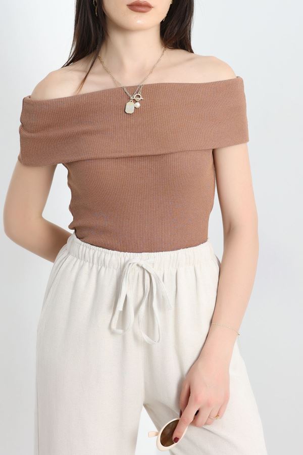 Sırt Dekolteli Örme Bluz Vizon - 71788.444.
