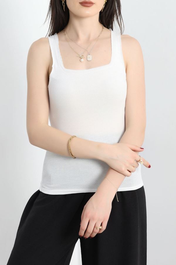 Madonna Yaka Likralı Kaşkorse Bluz Fümebeyaz - 42765.1567.