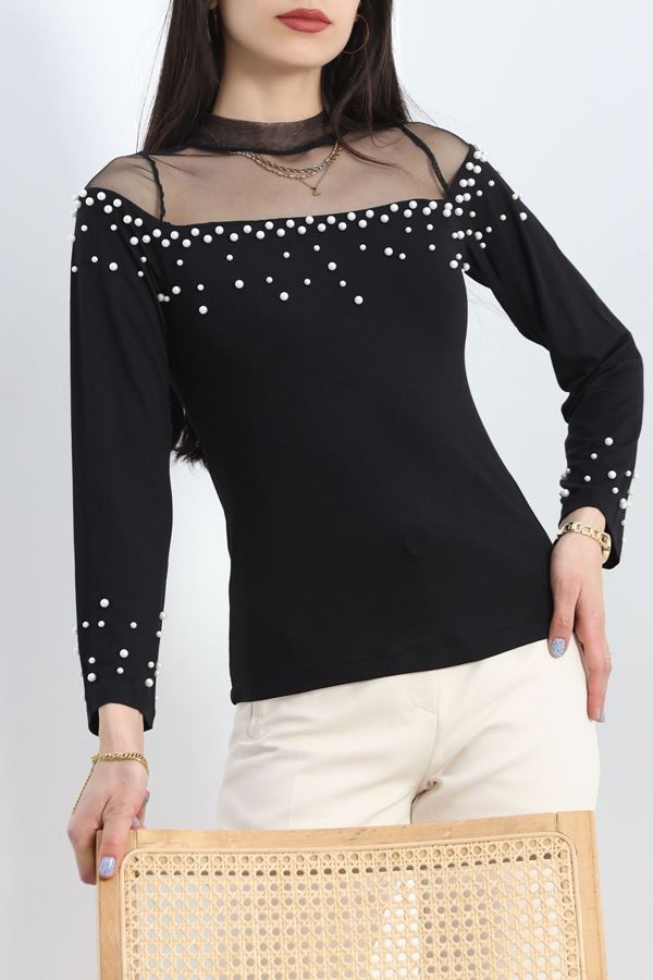 Drape Detay İspanyol Kol Bluz Siyah - 40288.1949.
