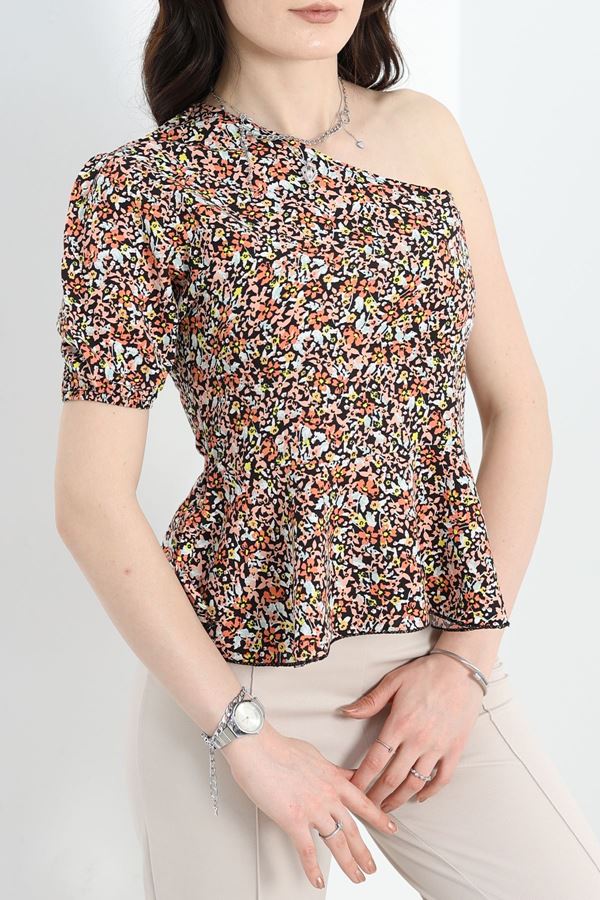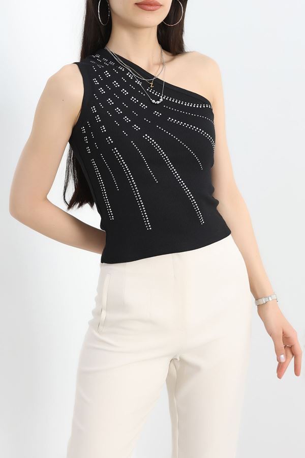 Buzzy Kumaş Tek Omuz Toka Detaylı Bluz Siyah - 1011.2119.