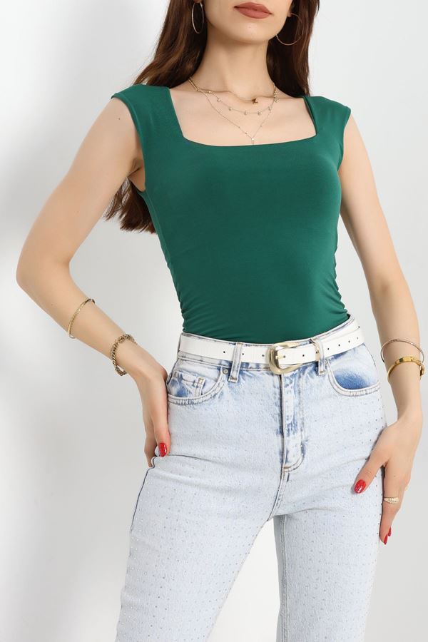 Dik Yaka Parmak Geçmeli Viskon Body Yağyeşili - 40076.599.