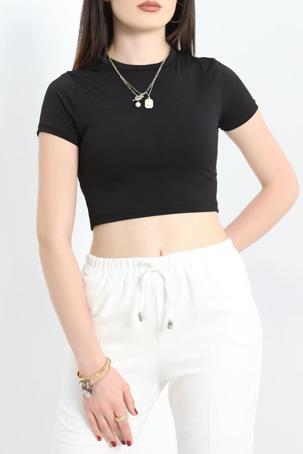 Madonna Yaka Crop Yumoş Body Siyah - 50209.1723.