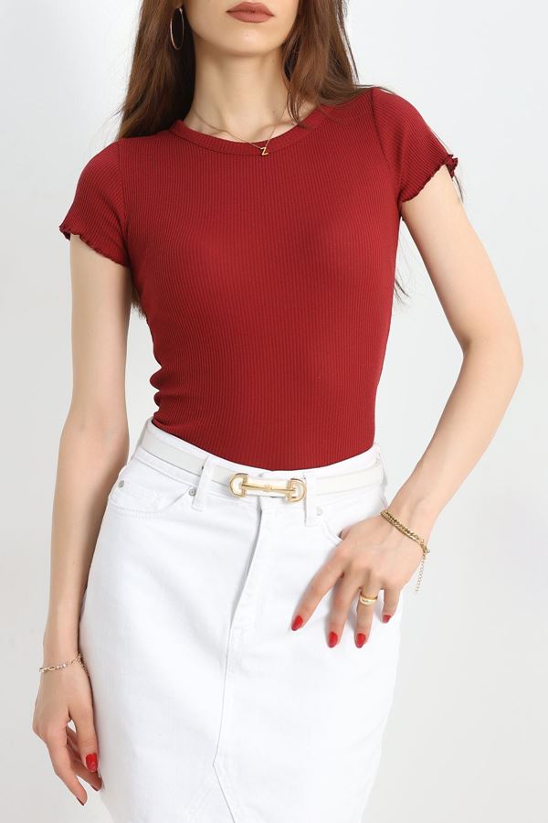 Dik Yaka Parmak Geçmeli Viskon Body Bordo - 40076.599.
