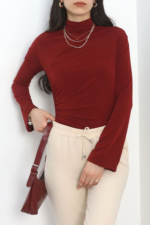 Drape Detaylı Büyük Beden Sandy Bluz Bordo - 70768.1949.