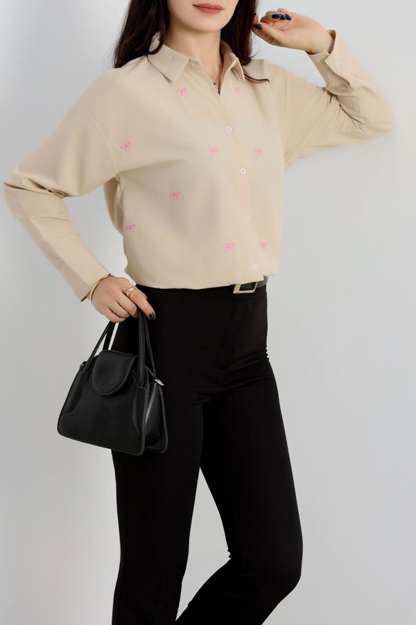 Çift Cepli Kuşaklı Tunik Gömlek Vizon - 70991.1775.