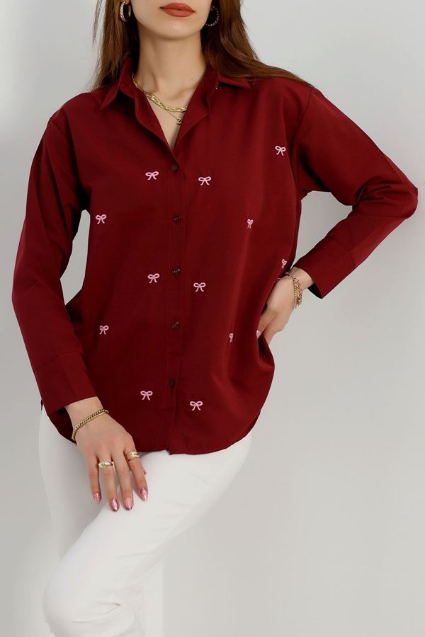 Terikoton Oversize Gömlek Bordo - 30840.1949.