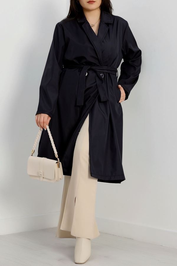 Büyük Beden Astarsız Bel Lastikli Trençkot Siyah - 31157.147.