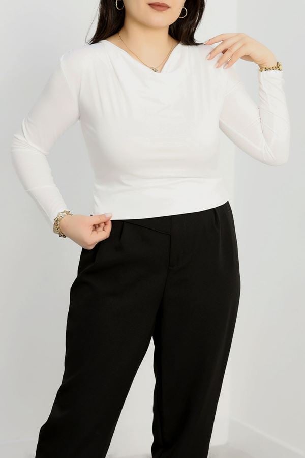 Drape Detaylı Büyük Beden Sandy Bluz Ekru - 70768.1949.