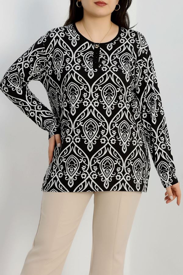 Degaje Yaka Büyük Beden Sandy Bluz Siyah - 70770.1949.