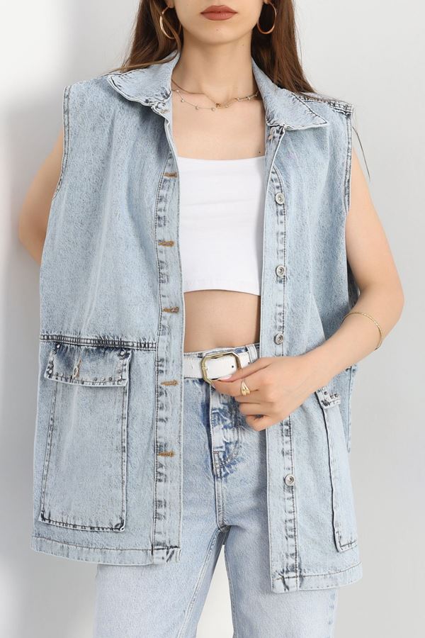 Cep Detay Kot Ceket Açıkmavi - 42680.1836.