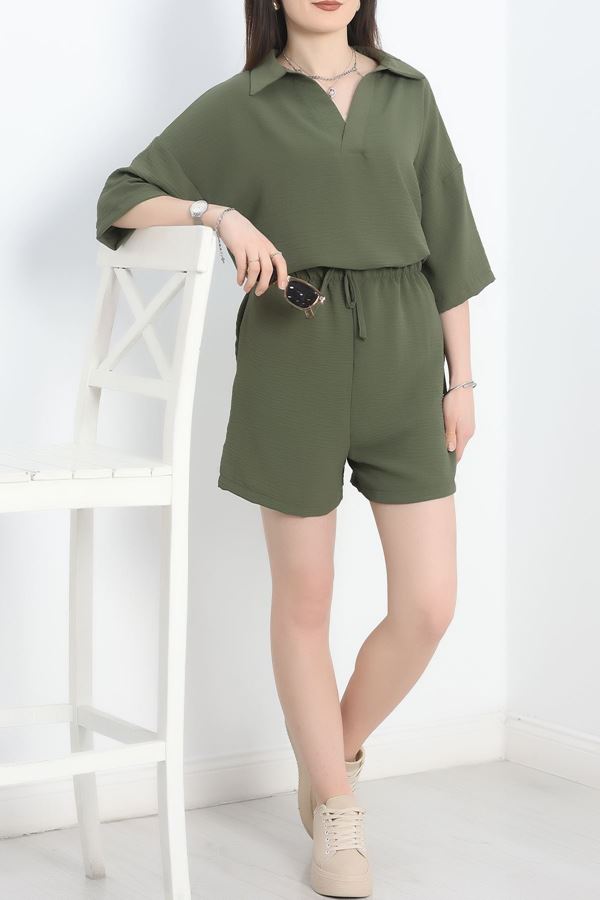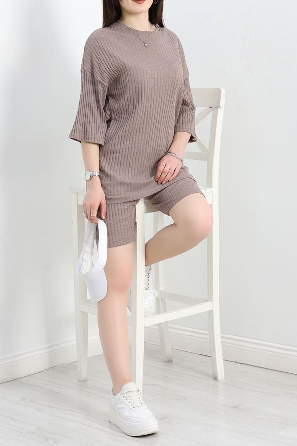 Kayık Yaka Selanik Kumaş İkili Takım Kahve - 42739.1567.