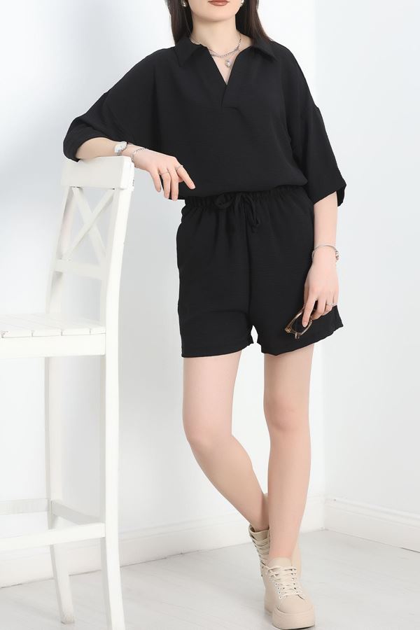 Kayık Yaka Selanik Kumaş İkili Takım Siyah - 42739.1567.
