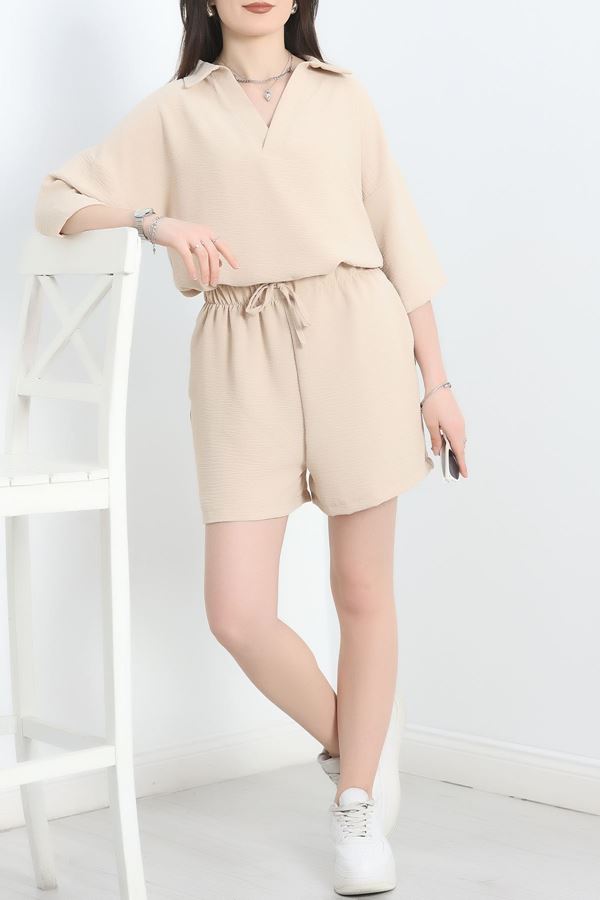Polo Yaka Raporlu İnterlok Takım Bejbeyaz - 42738.1567.